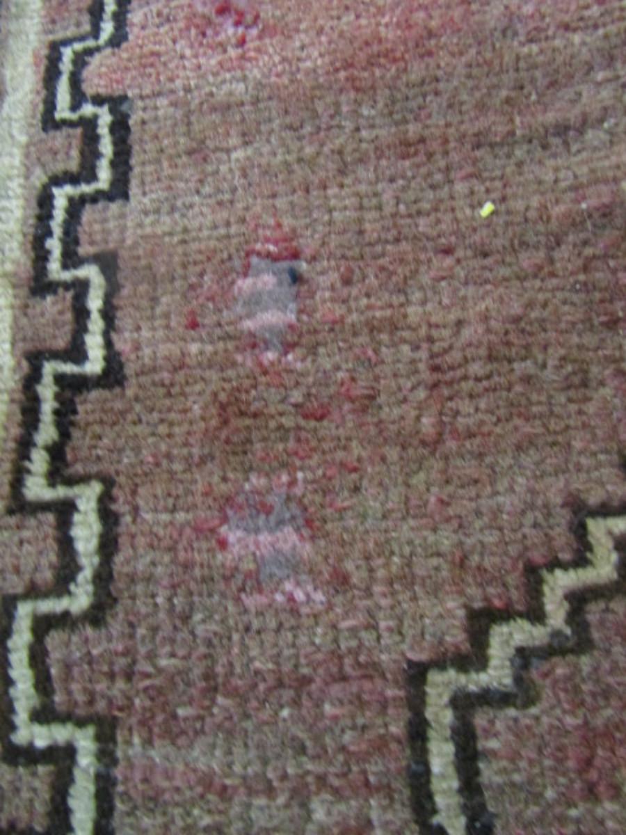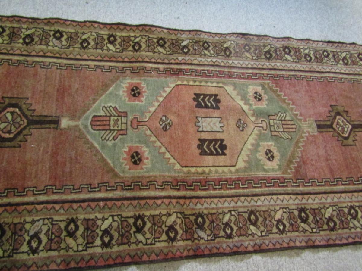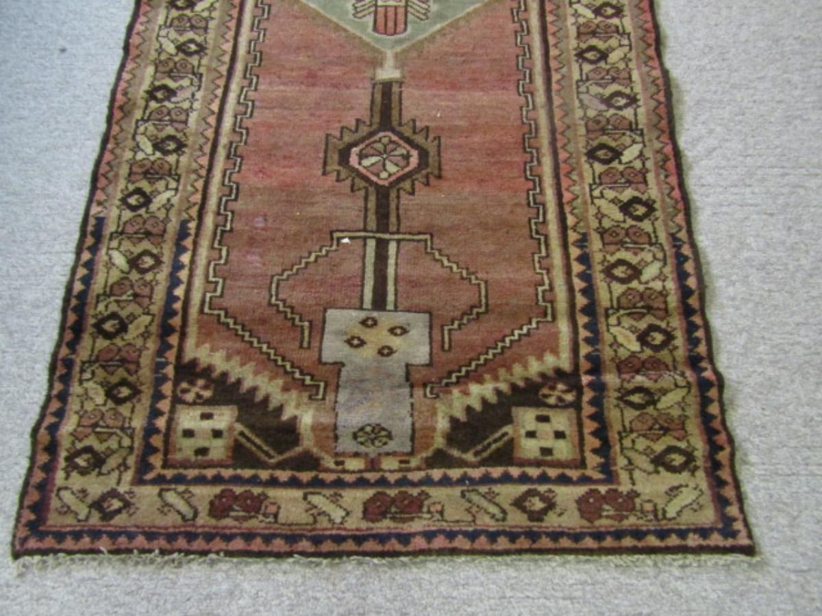 Persian Design Wool Area Rug Runner- Approx 110" x 40" (#7-M). Please see all pictures- there are a couple of spots of discoloration. Rug needs to be cleaned.