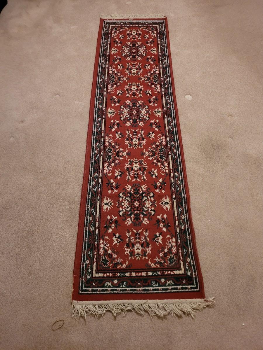 91" x 23" in ok shape except for one edge fraying. Not handmade