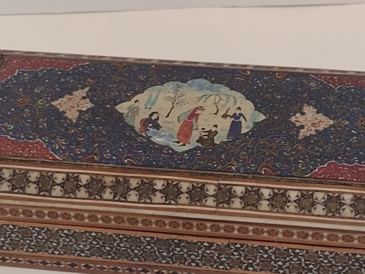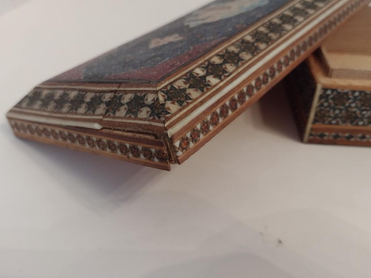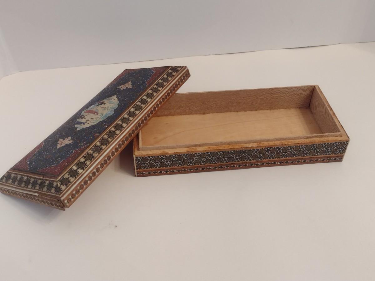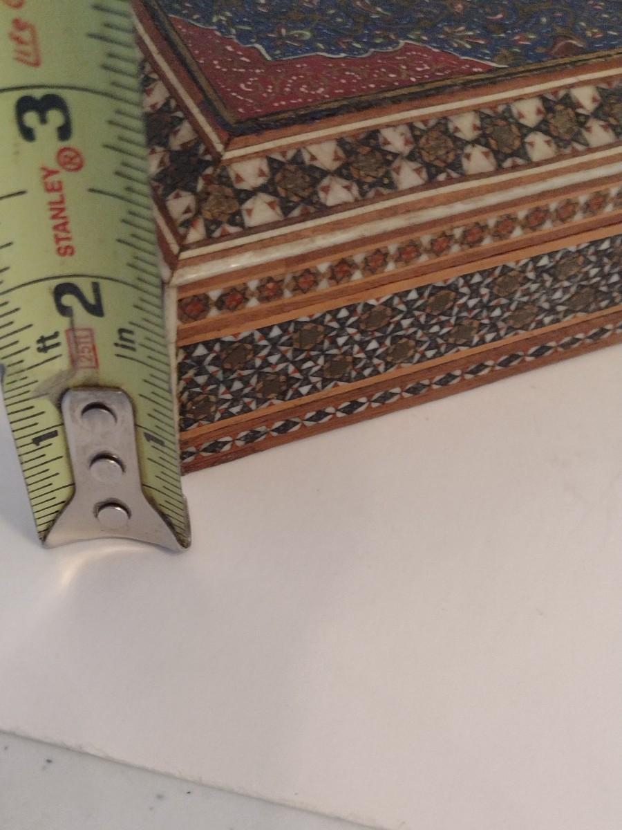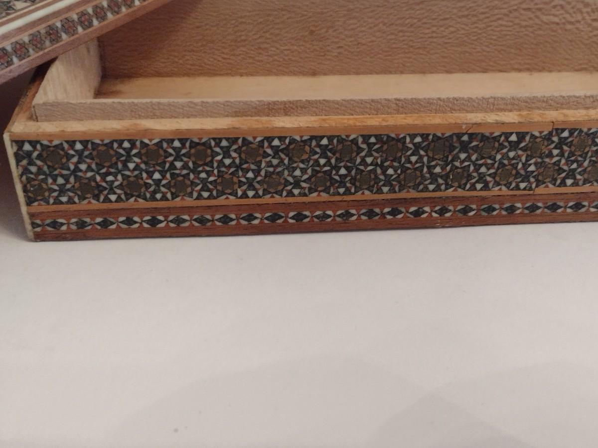 Persian Micro Mosaic Khatam Inlaid Trinket Box. See pictures for some minor detail damage.