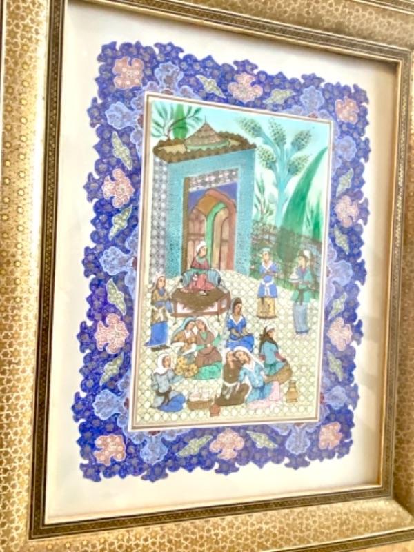 Persian Miniature Art Painting with Mosaic Frame