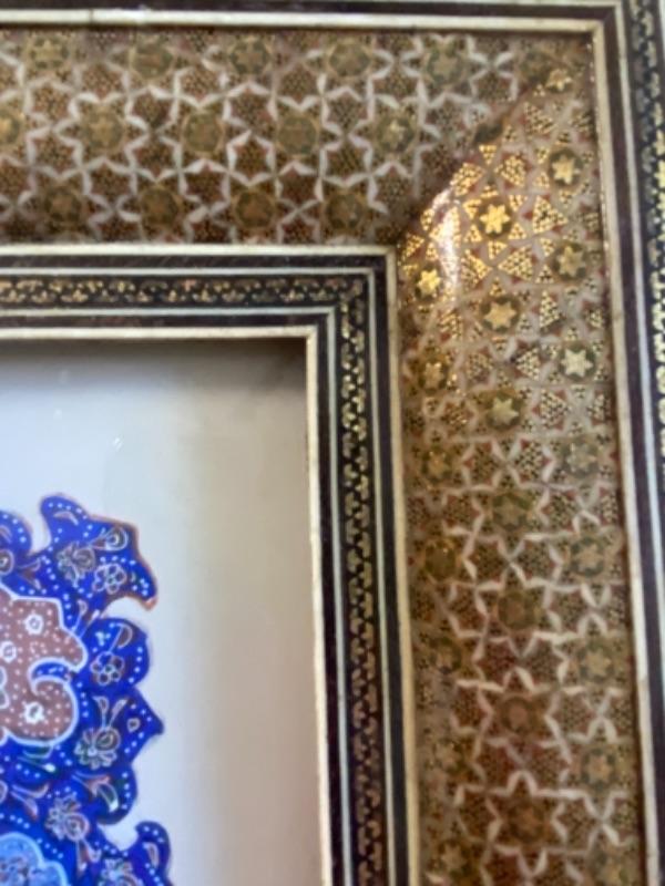 It is painted and illuminated by hand and the frame is coated with khatam.The frame is in very good condition allthough there are some wear/missing parts specially on back