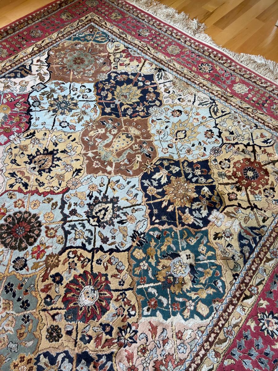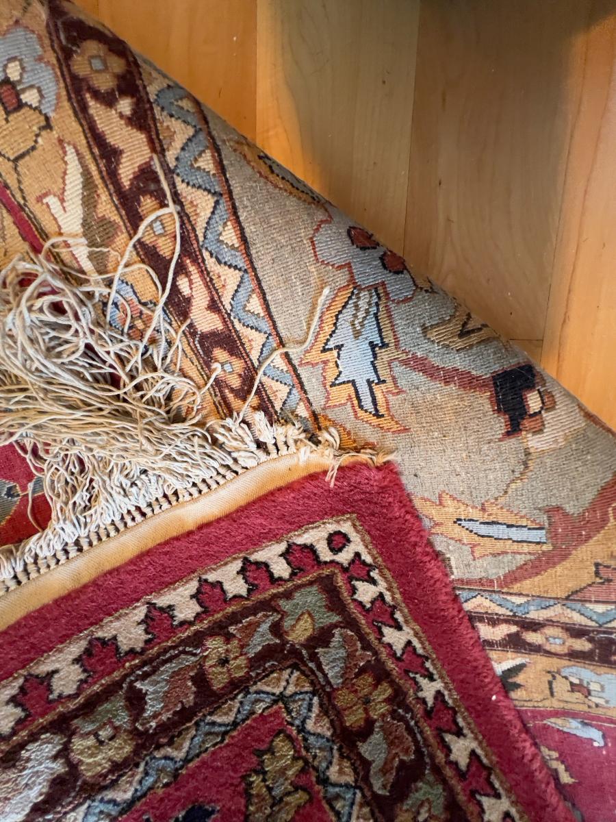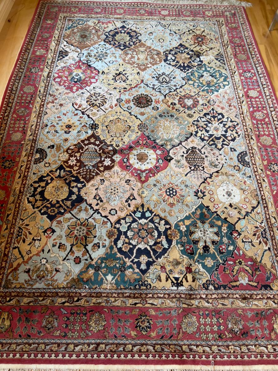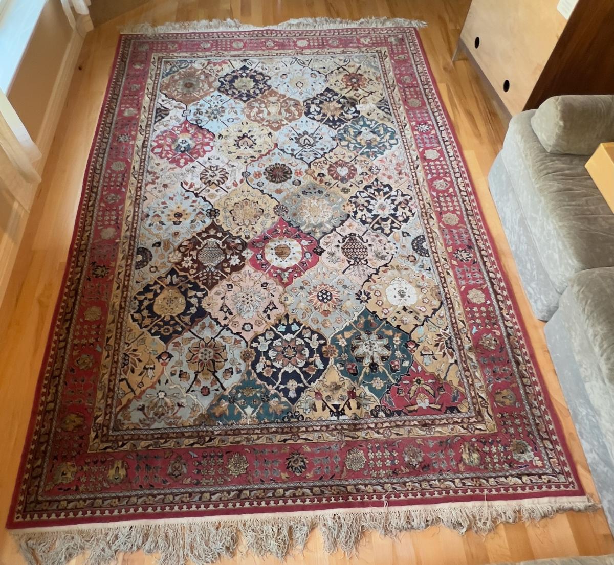 Measure 120" X 80" Very Good Condition. Minor Fringe Loss, but over all very good. No Stains or Damage.