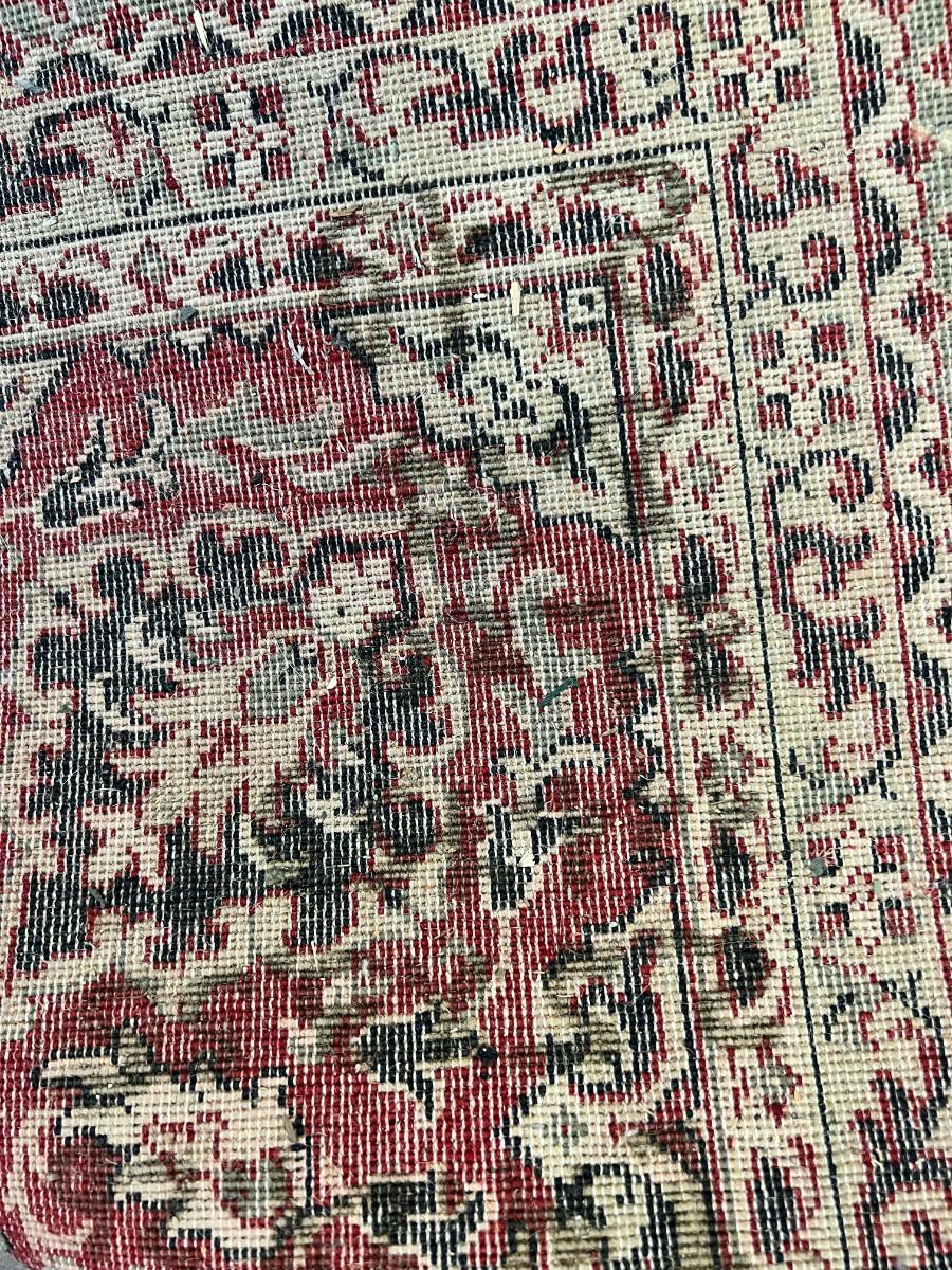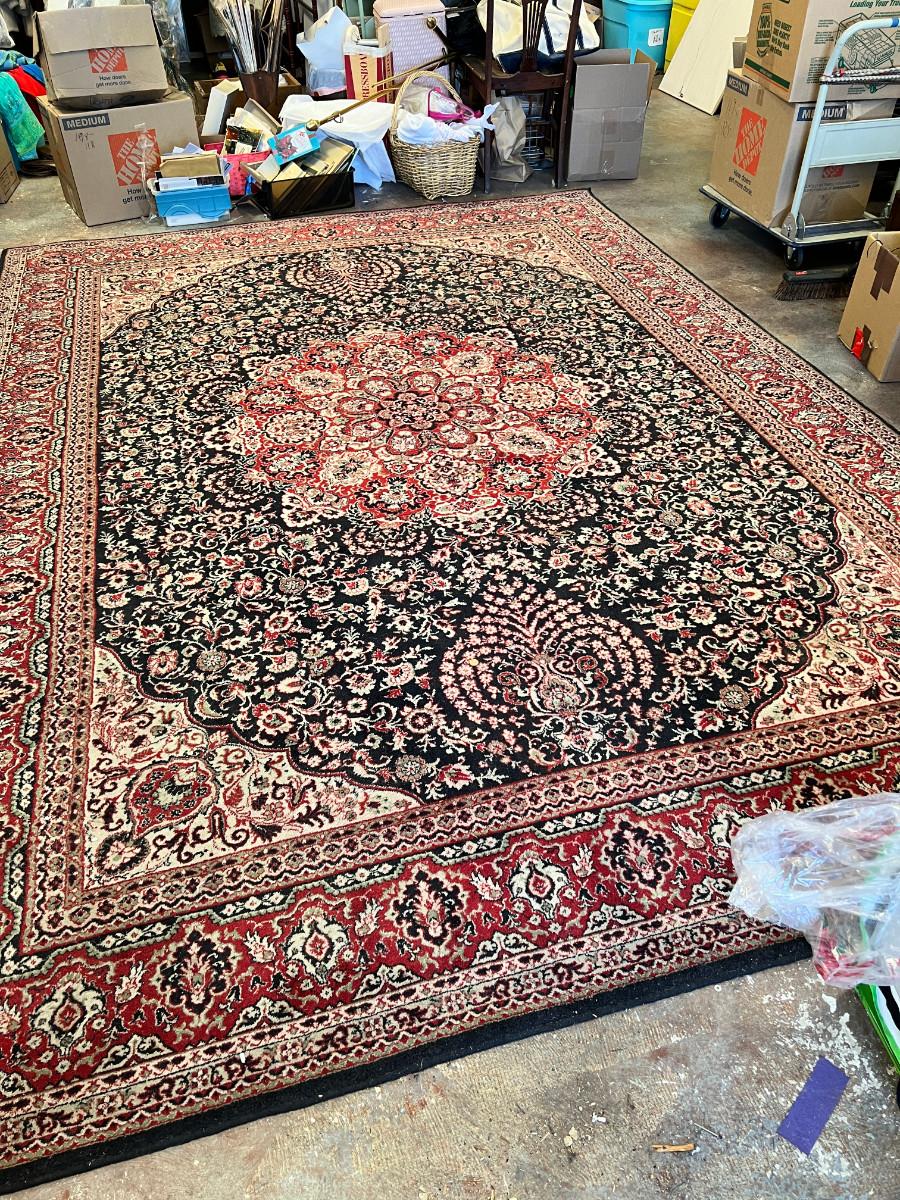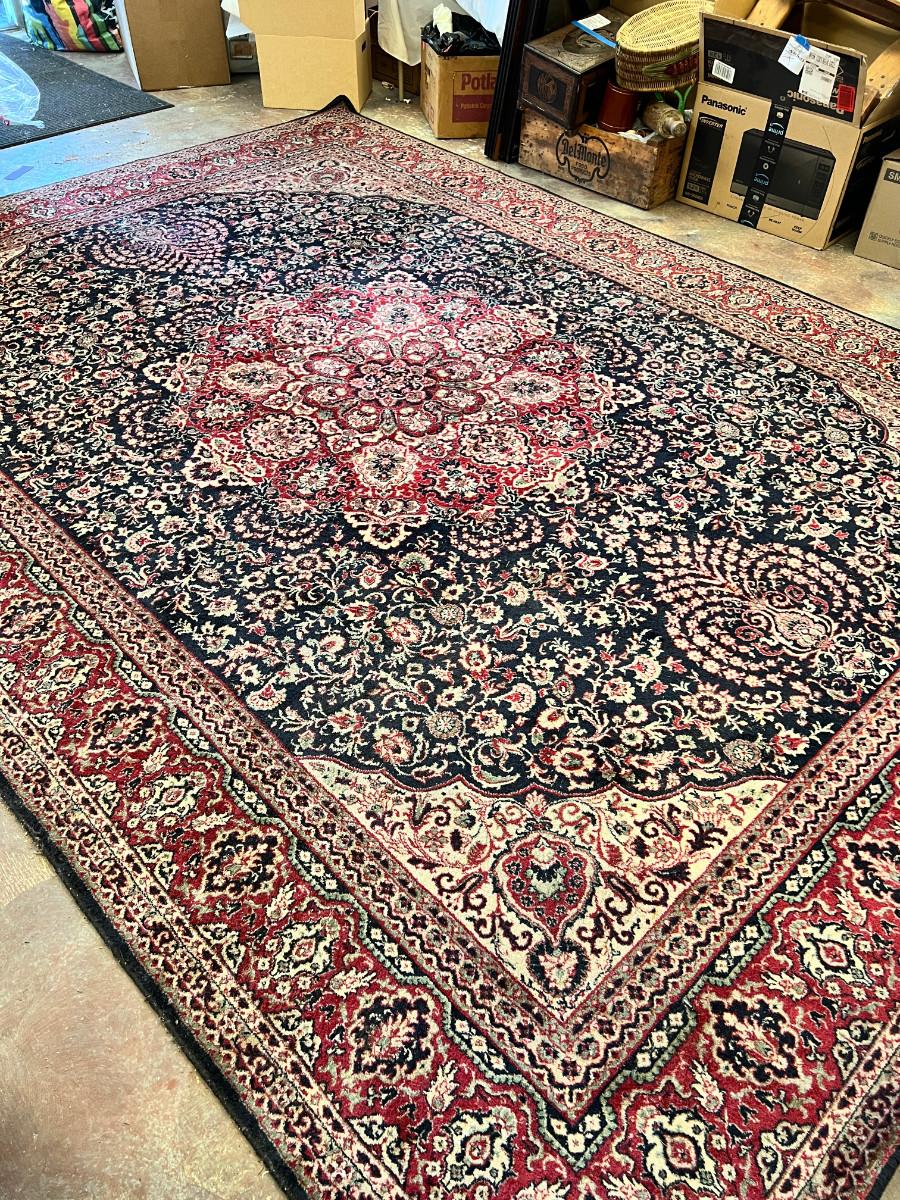 Persian Rug 98 X 114 Wood Mandala design. The rug is in good condition no stains or rips. The only wear I spotted is light along the edges.