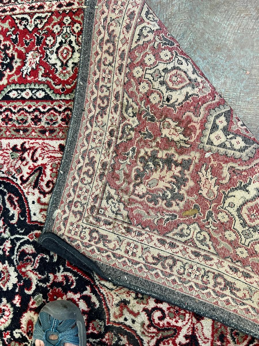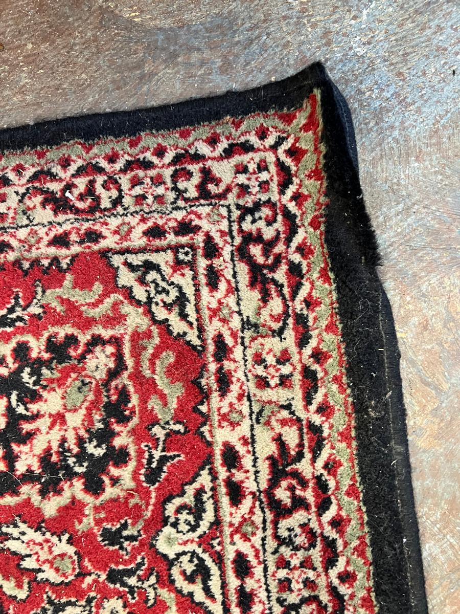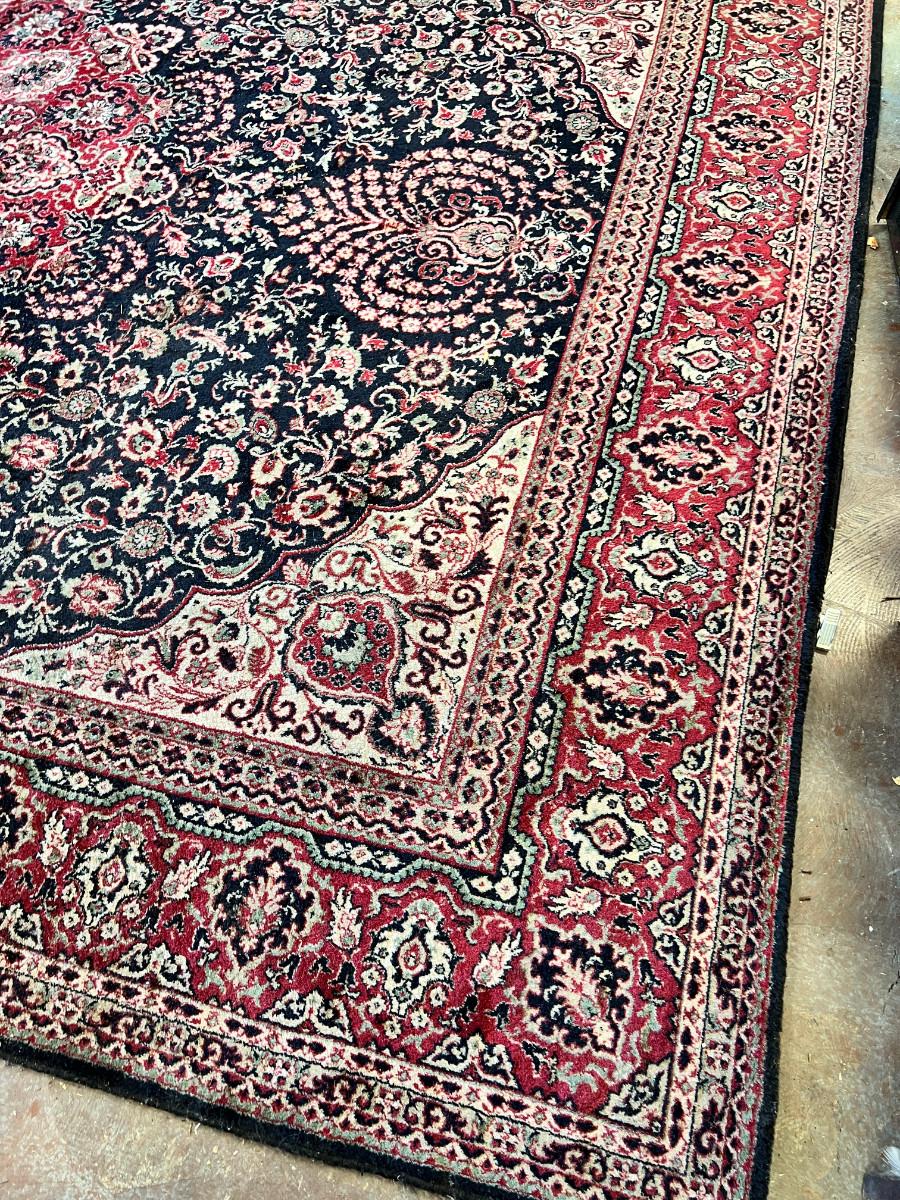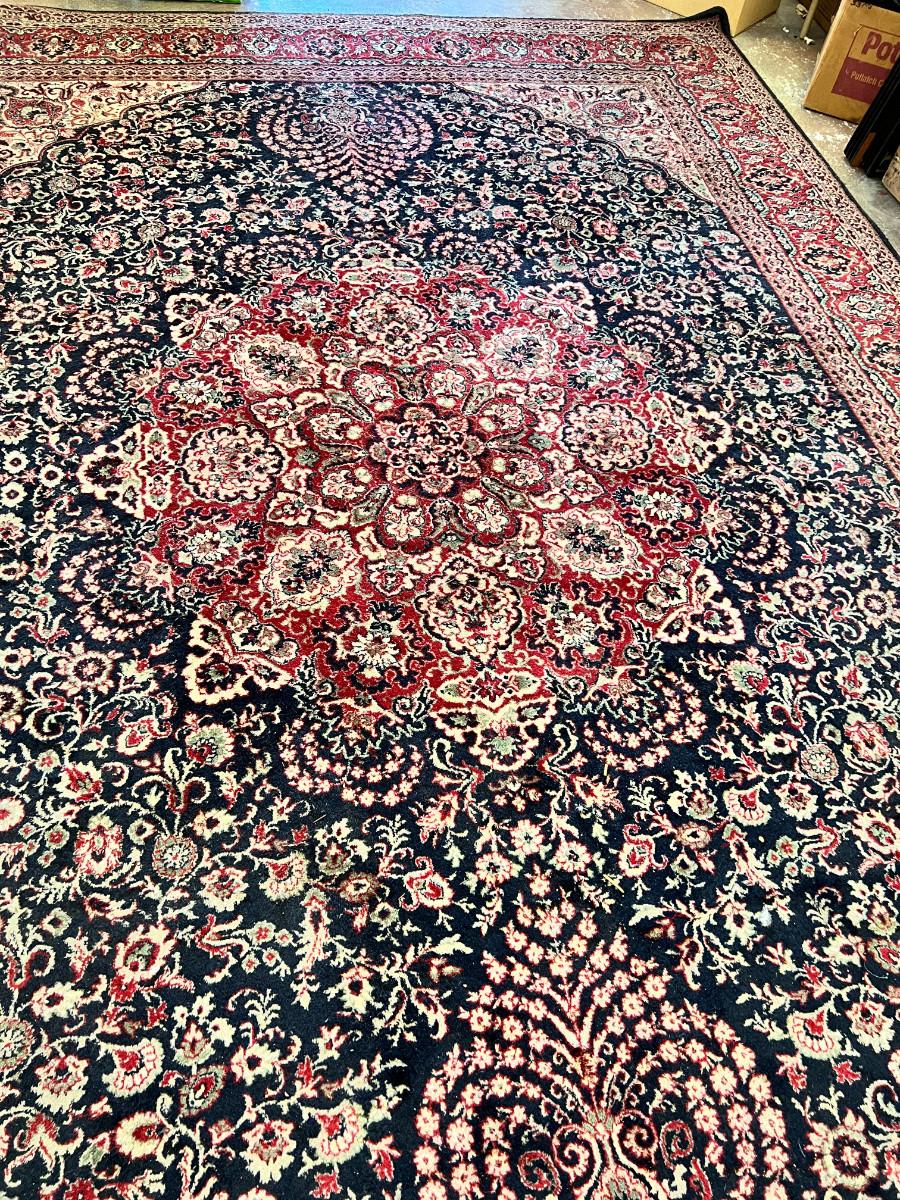 Persian Rug 98 X 114 Wood Mandala design. The rug is in good condition no stains or rips. The only wear I spotted is light along the edges.