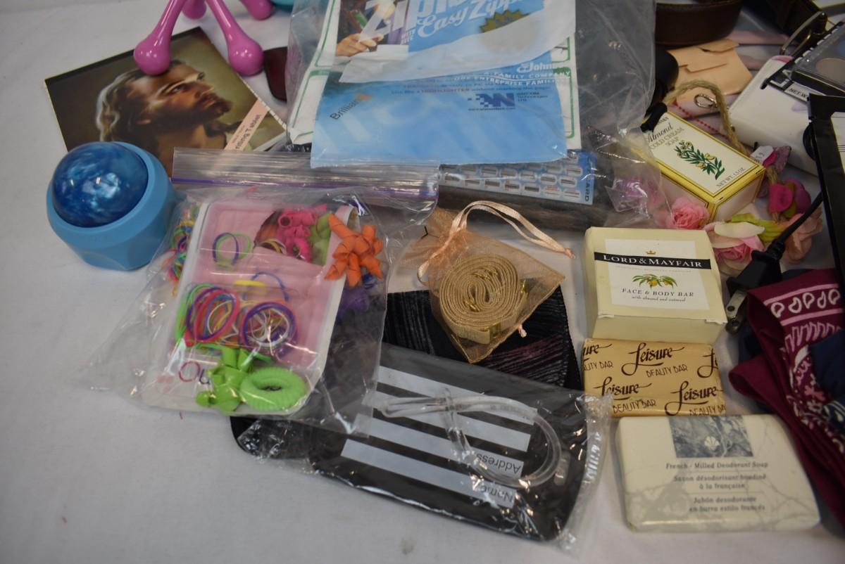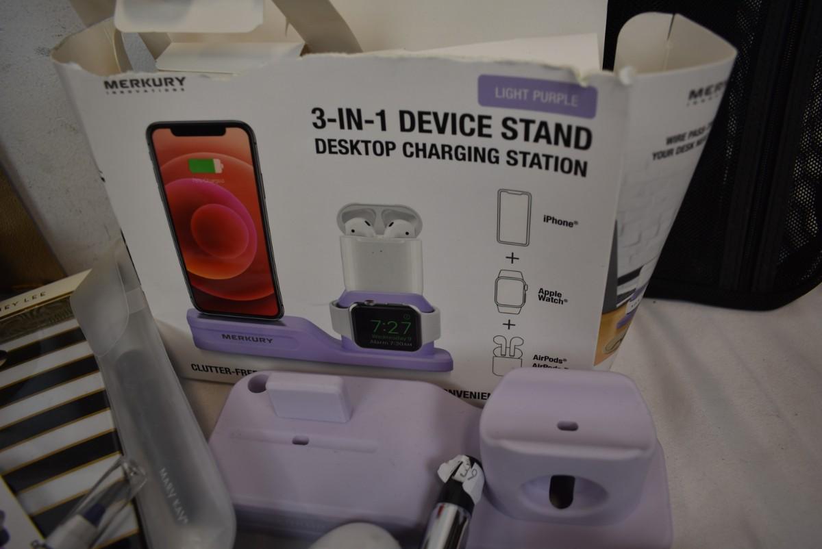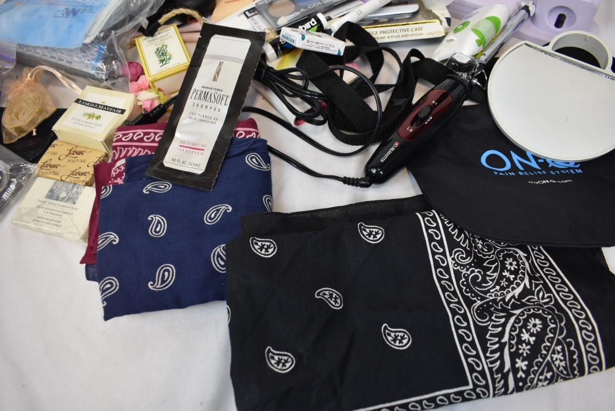 Personal Care Lot: 3-1 Apple Device Stand, Bandanas, Bar Soap, Travel Bag