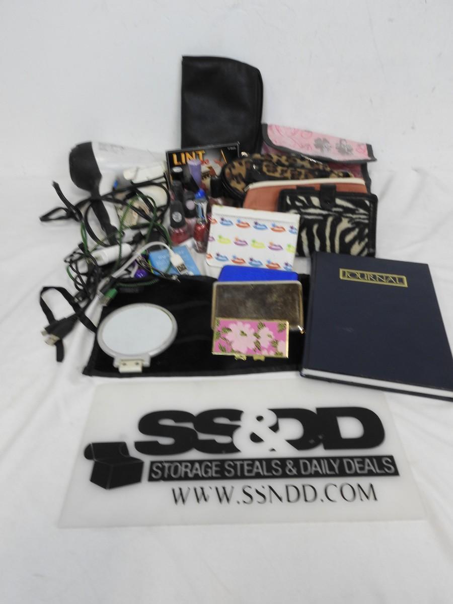Personal Care Lot: Blow Dryer, Nail Polish, Make-Up Bag, Jewelry Bag, Wallet, Journal, Card Cases