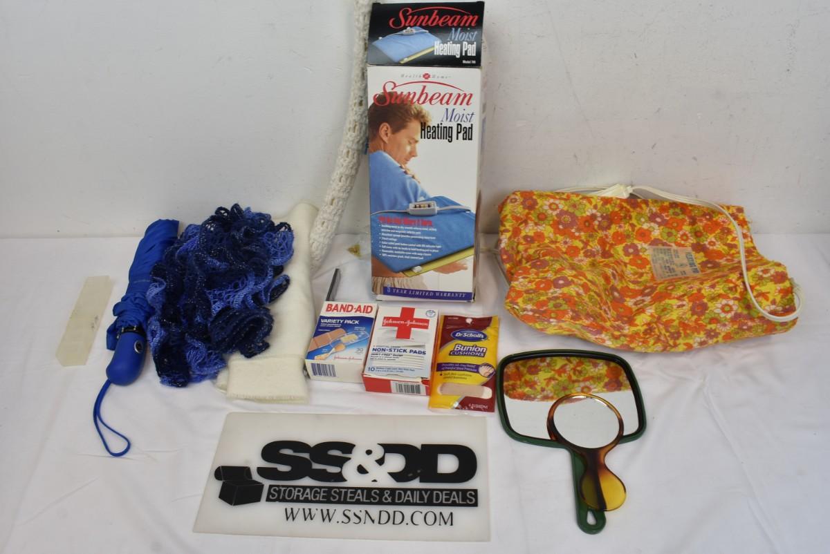 Personal Care Lot: Heating Pads, Scarves, Band-Aids, Umbrella, Mirrors