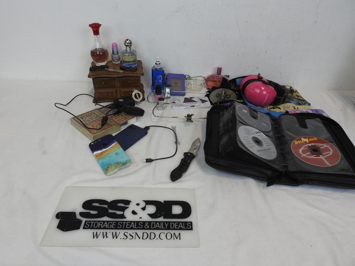 Personal Care Lot: Jewelery Box, CD Case, Phone Cases, Pocket Knives, Perfume, etc