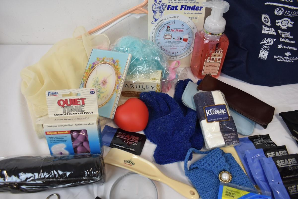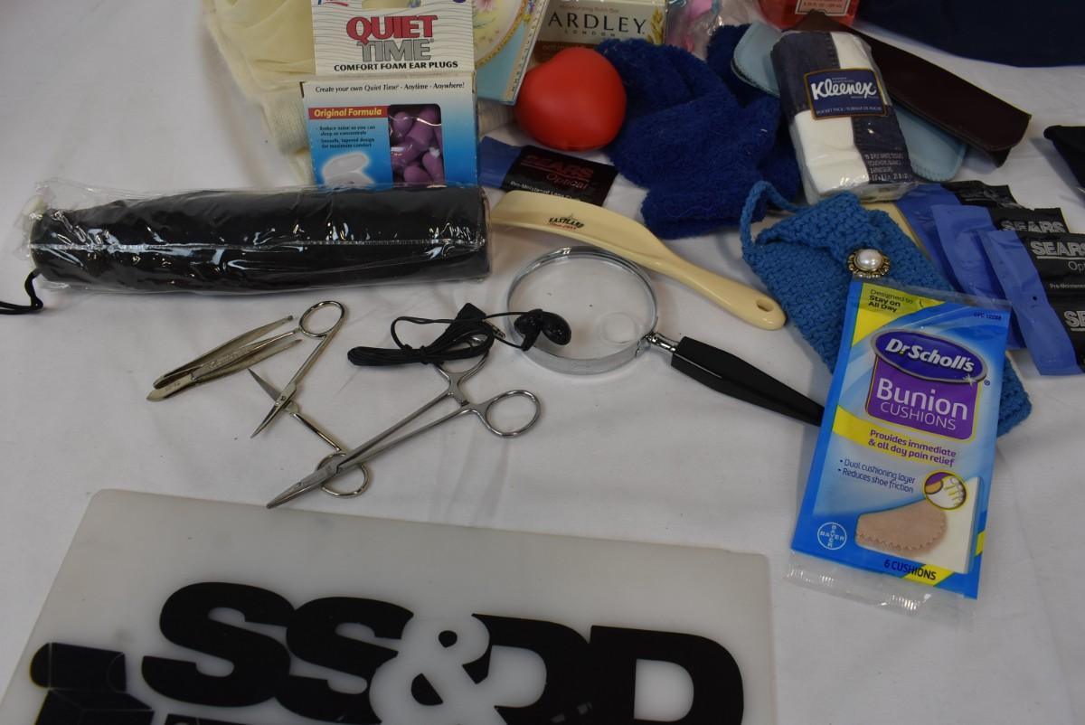 Personal Care Lot: Soap, Glasses Cleaners, Hangers, Earplugs, Umbrella, etc