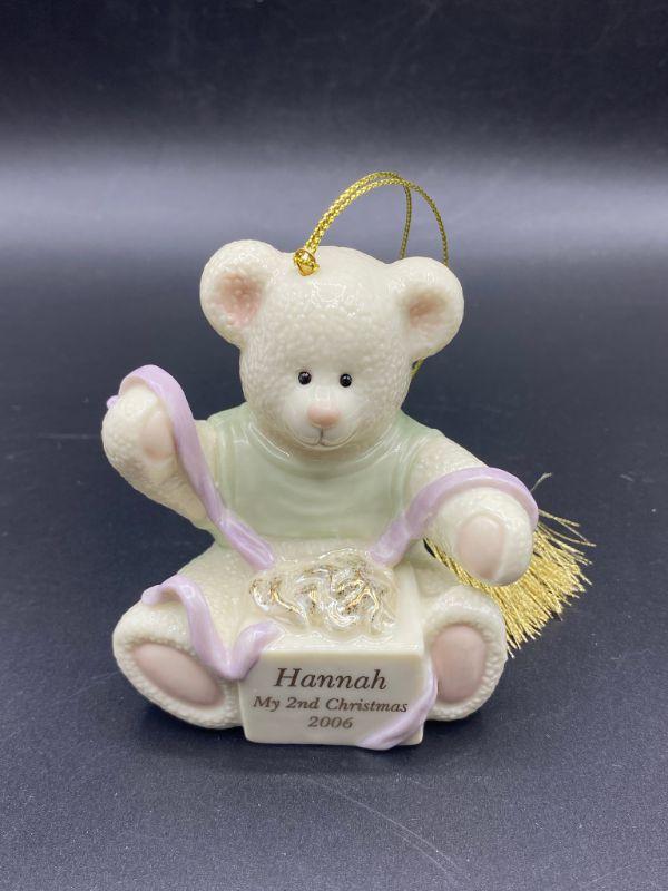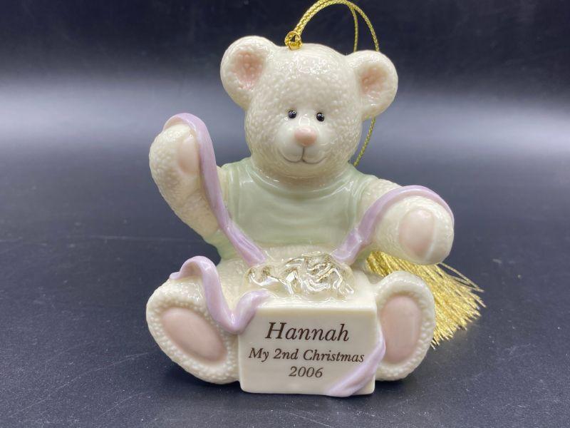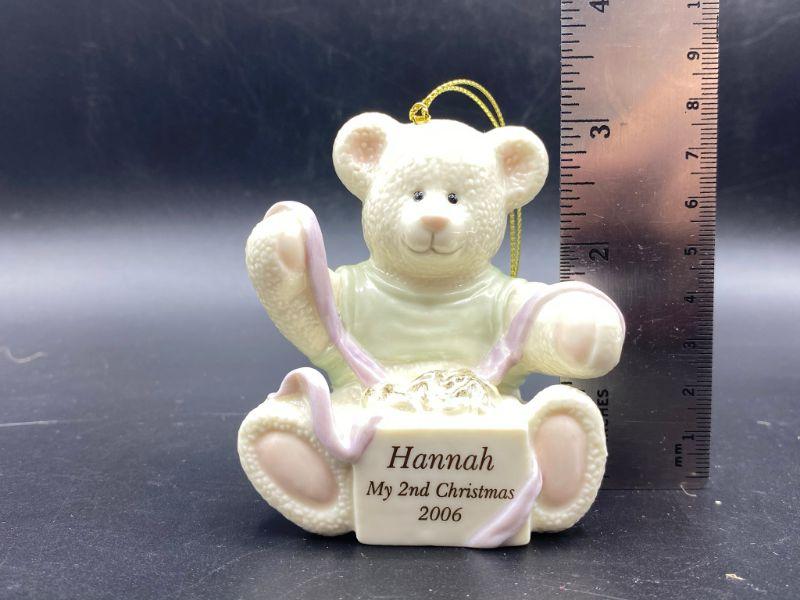 Personalized Lenox bear ornament. Good condition. Unsure how you would remove the personalization but it is probably possible.
