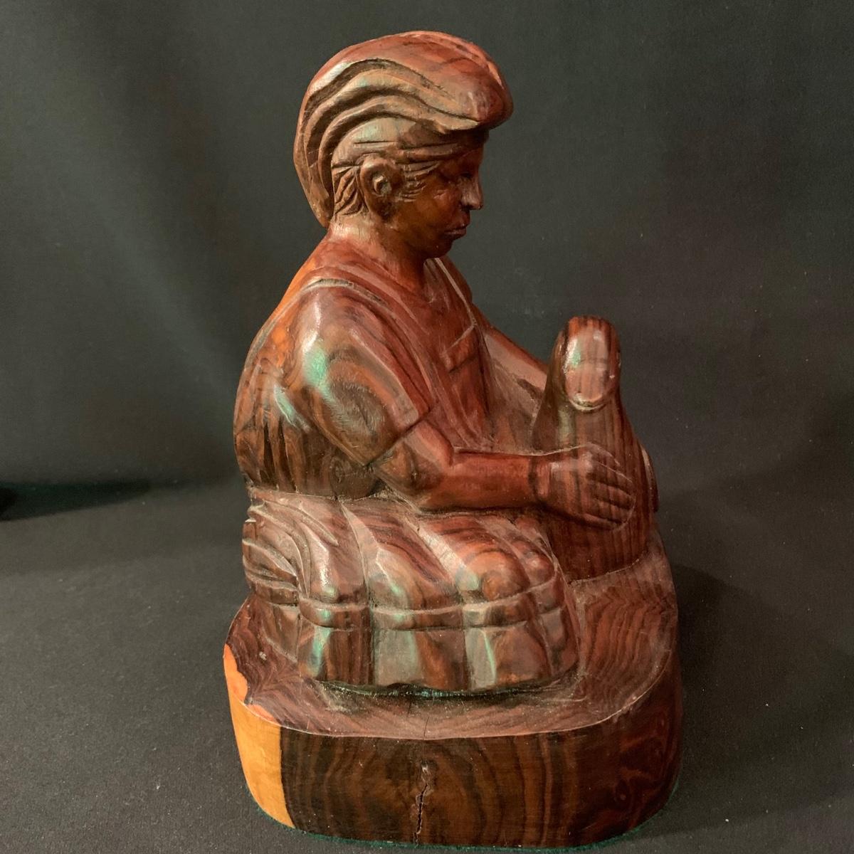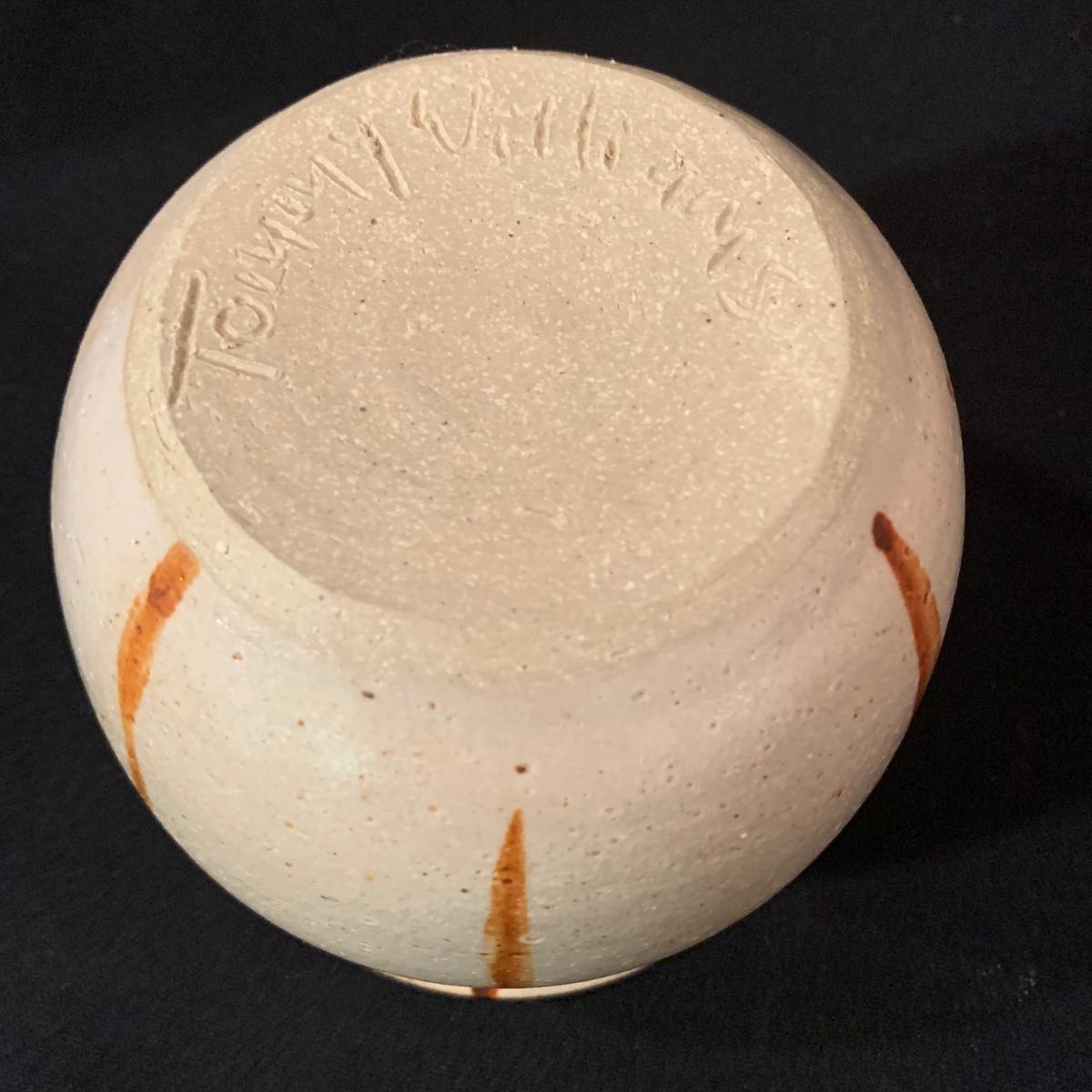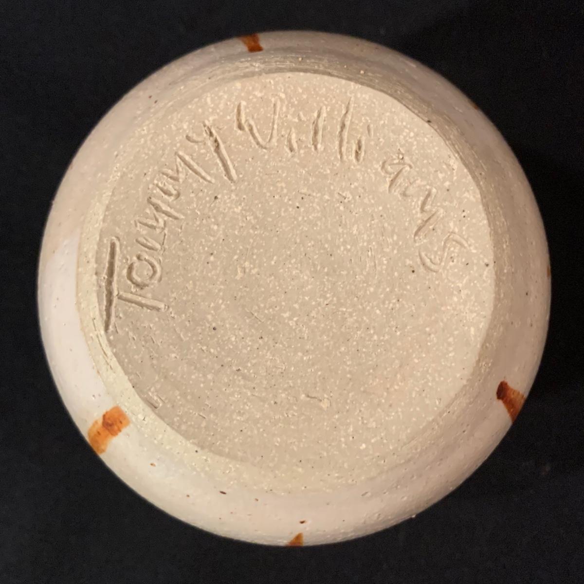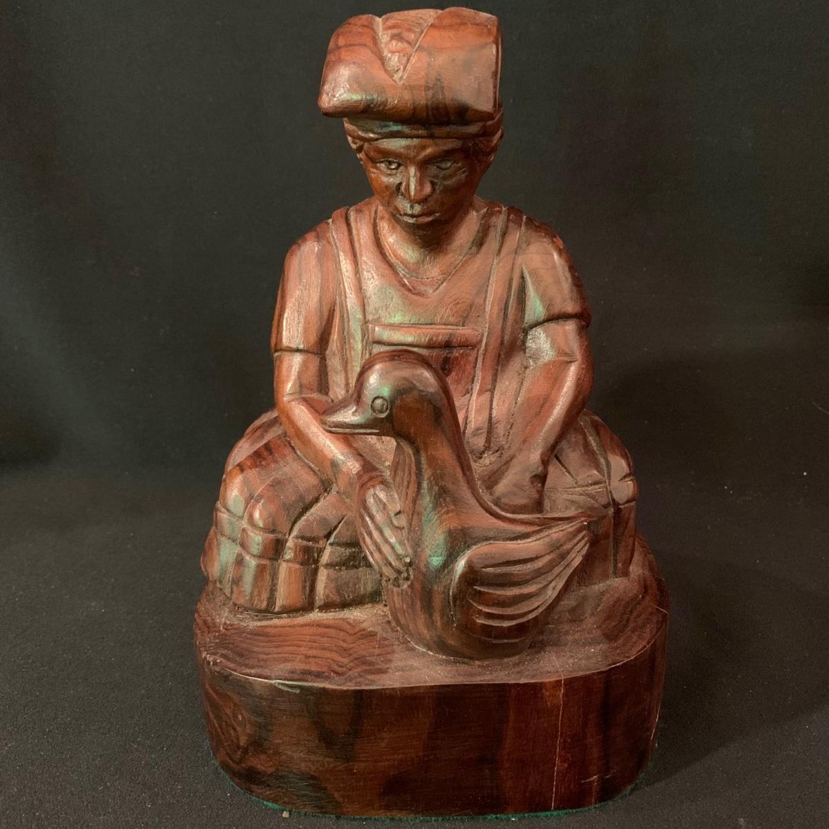 Lot of Peruvian-style collectibles includes three hand painted wood eggs, two Peruvian blouses, a variety of maps, and books, small hand painted picture, wood carved lady with duck, felt coasters, and small handmade plate. Lot also includes small potted vase, signed by Tommy Williams.