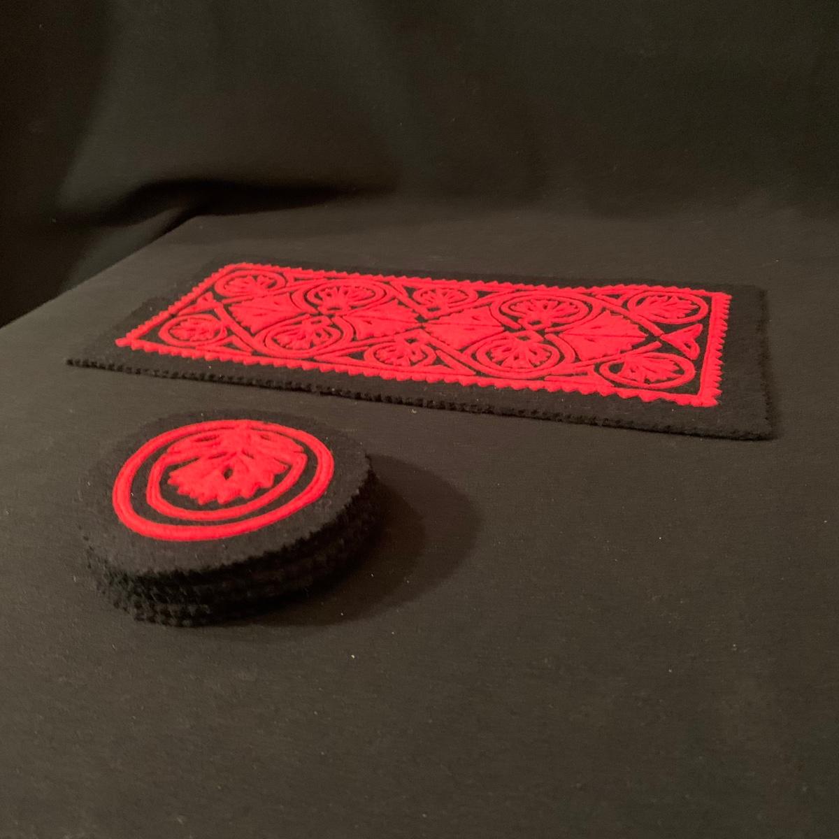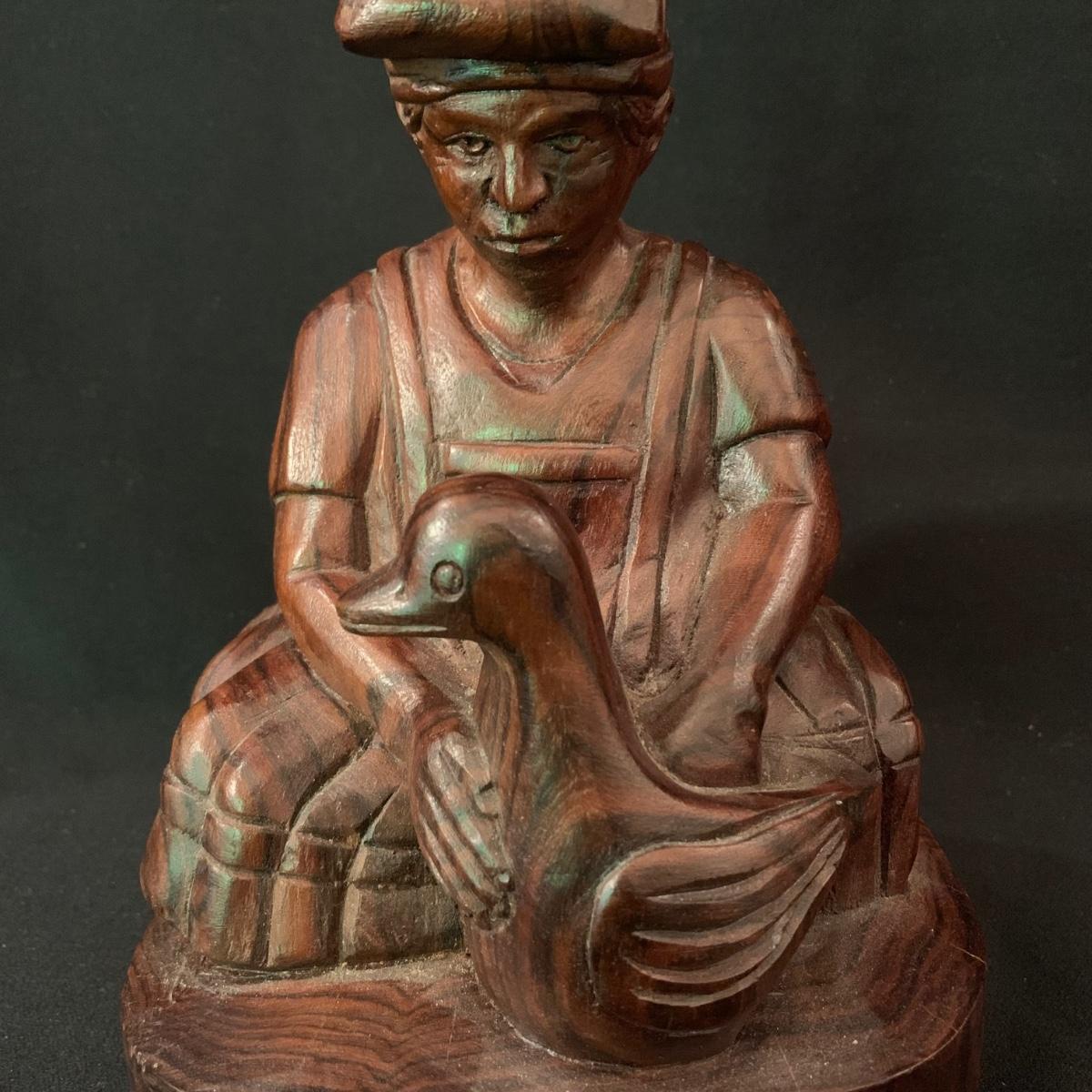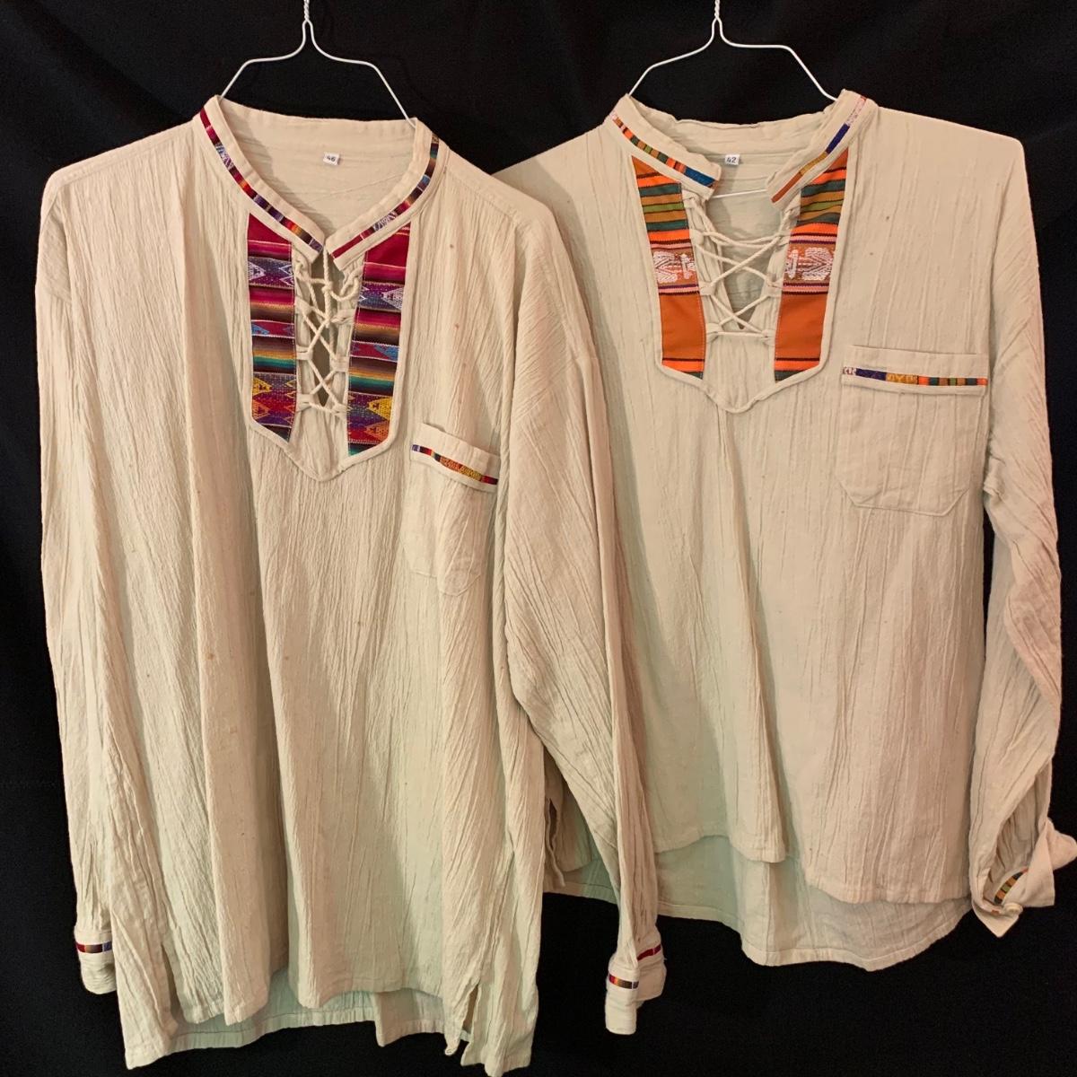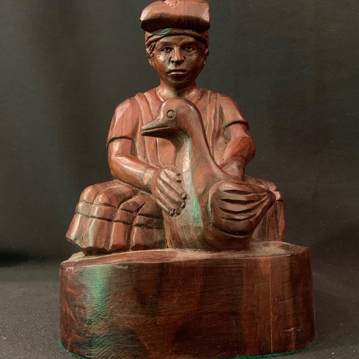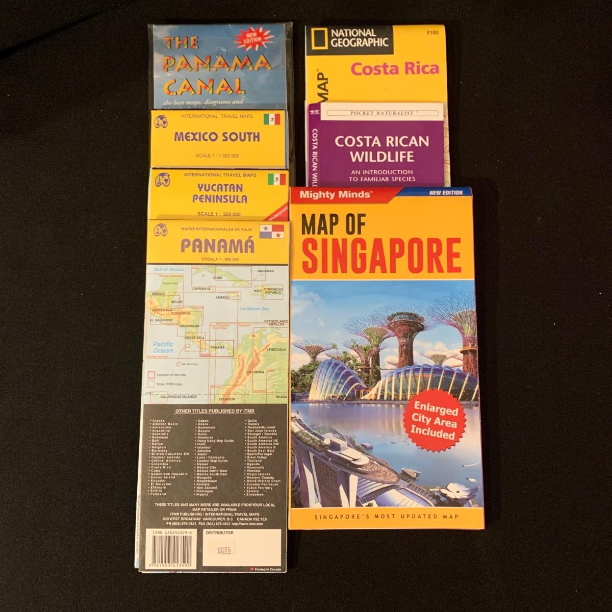Lot of Peruvian-style collectibles includes three hand painted wood eggs, two Peruvian blouses, a variety of maps, and books, small hand painted picture, wood carved lady with duck, felt coasters, and small handmade plate. Lot also includes small potted vase, signed by Tommy Williams.