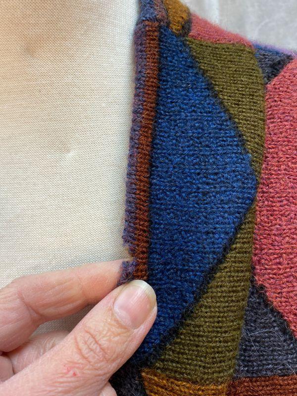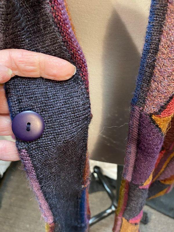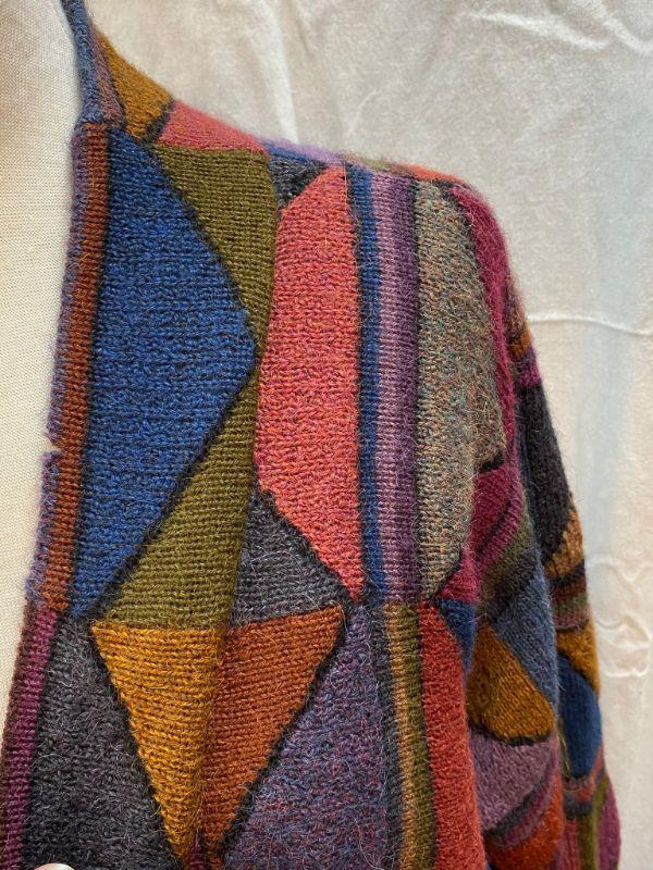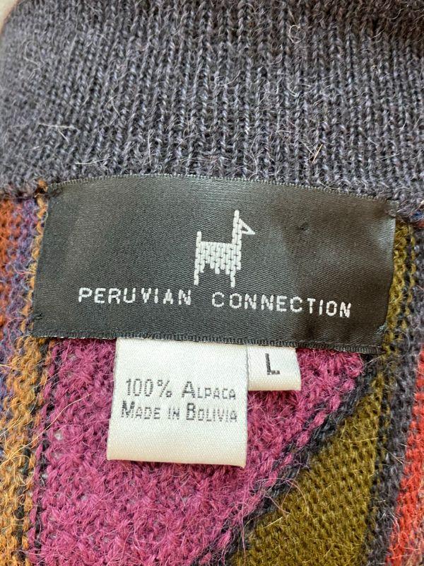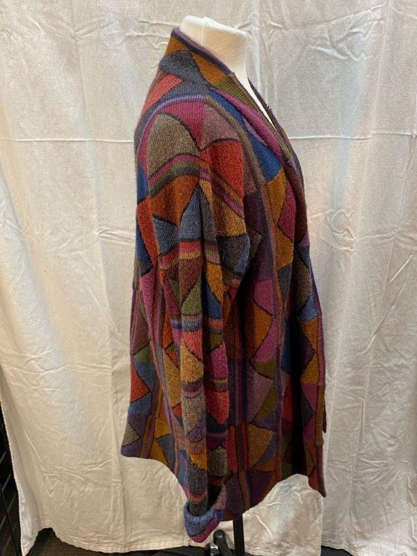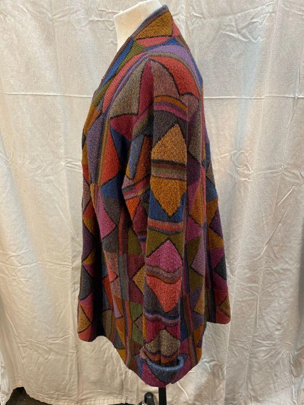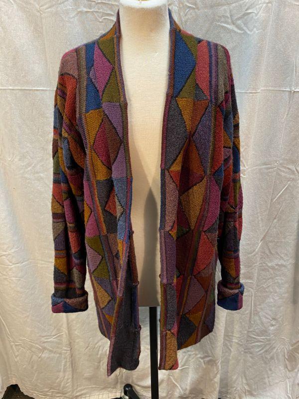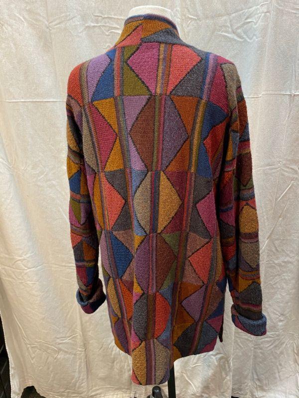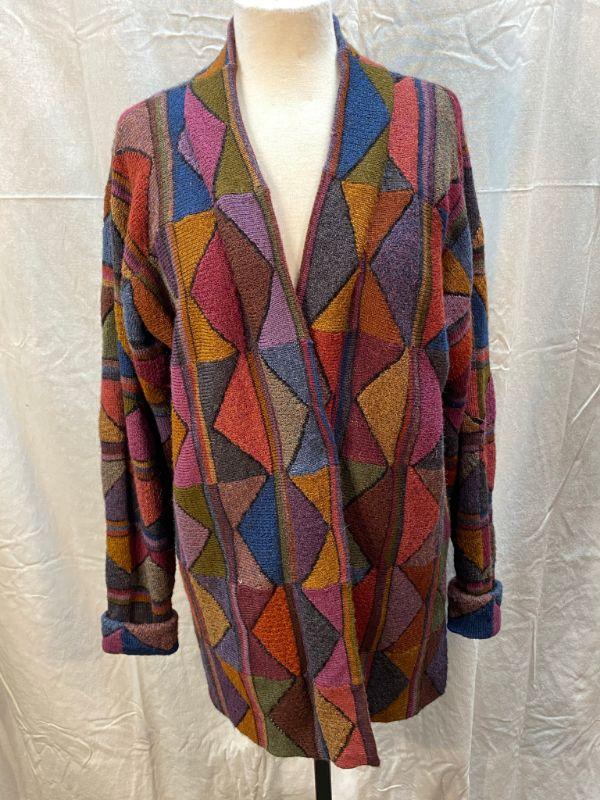 Peruvian Connection cardigan sweater. Colorful triangle design. 100% Alpaca. Good condition. Long, above knee length.