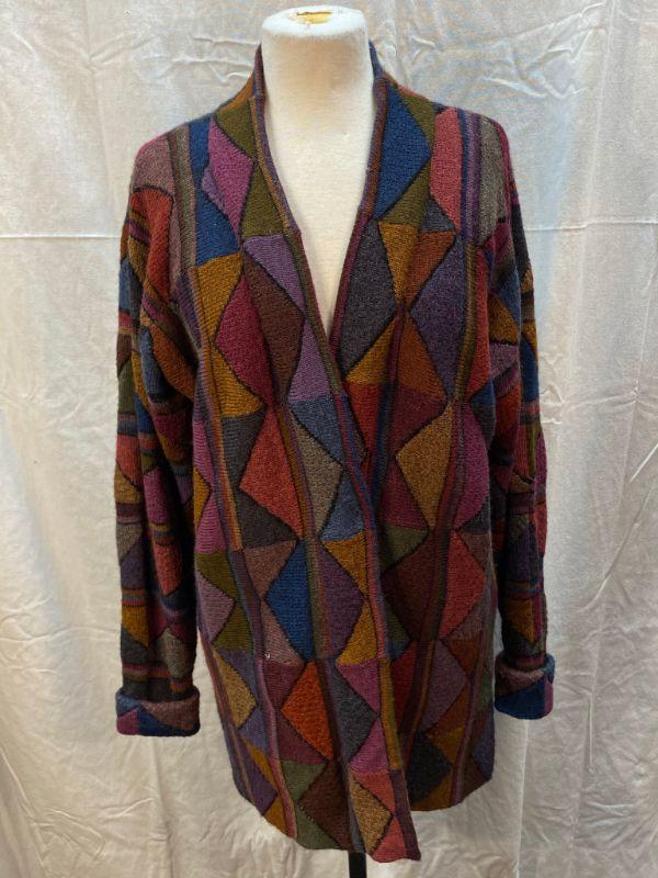 Peruvian Connection Colorful Triangle Design Alpaca Cardigan Sweater Size L YD#020-1220-02180