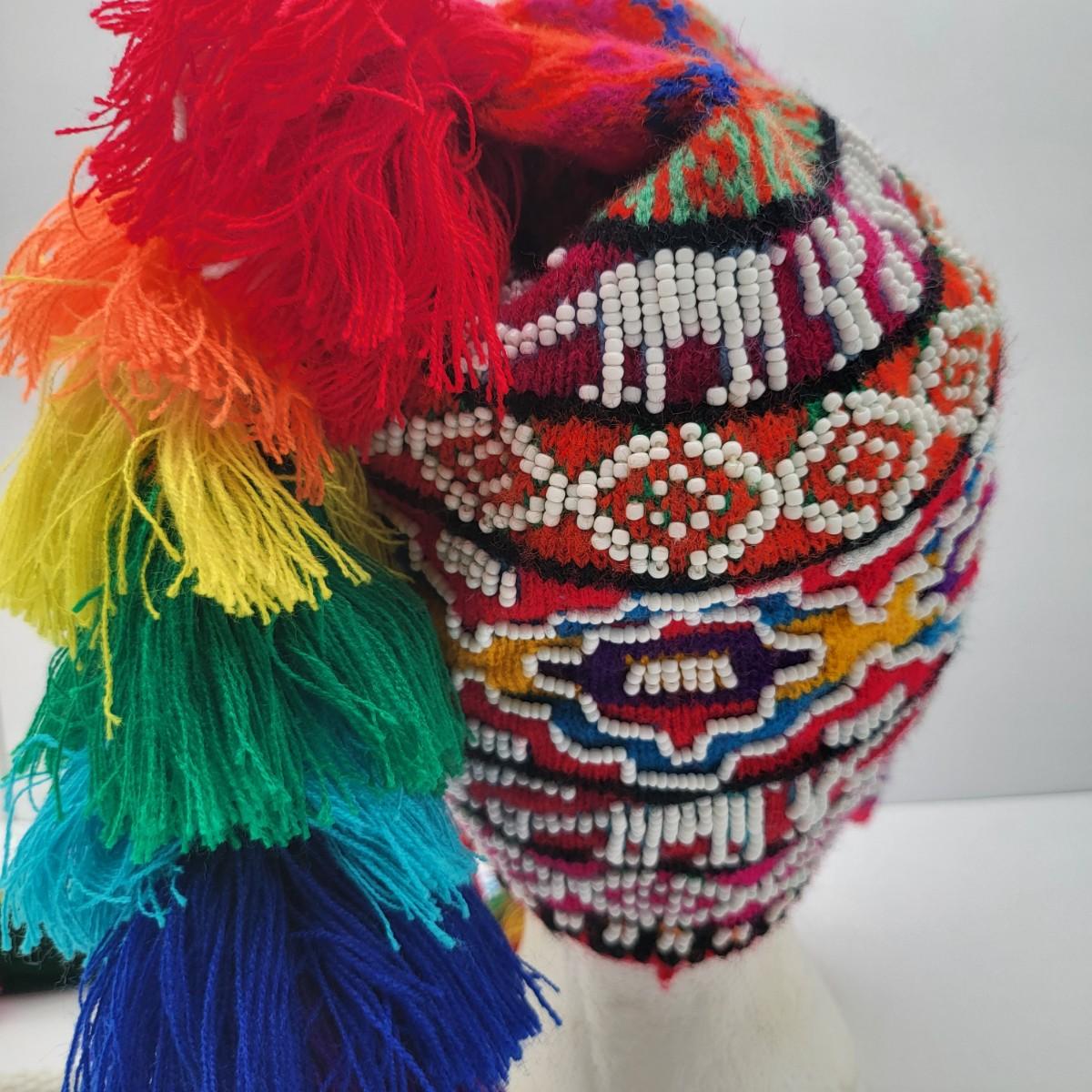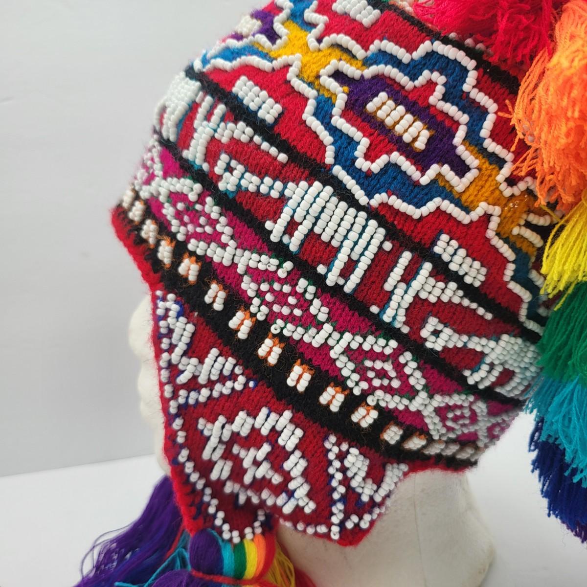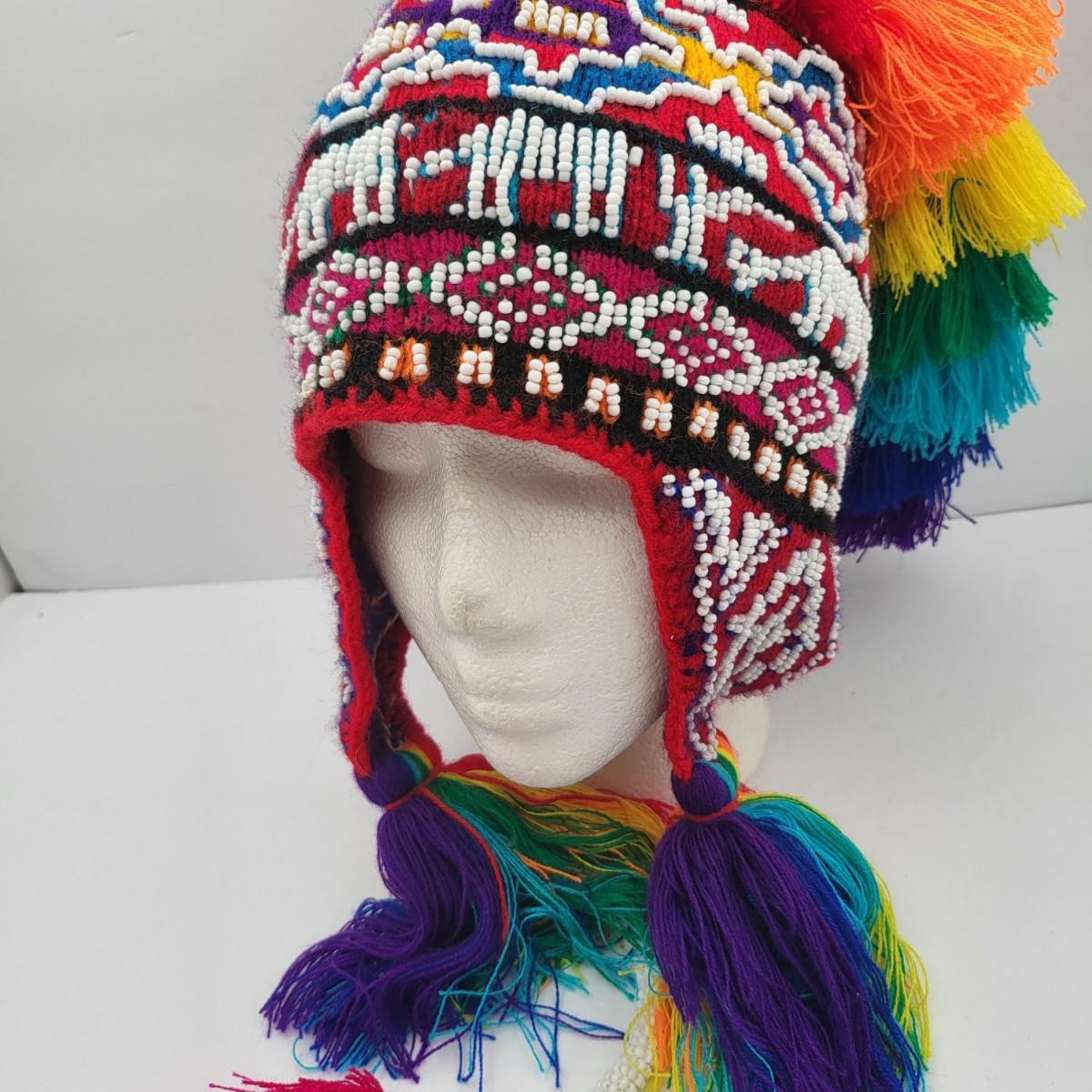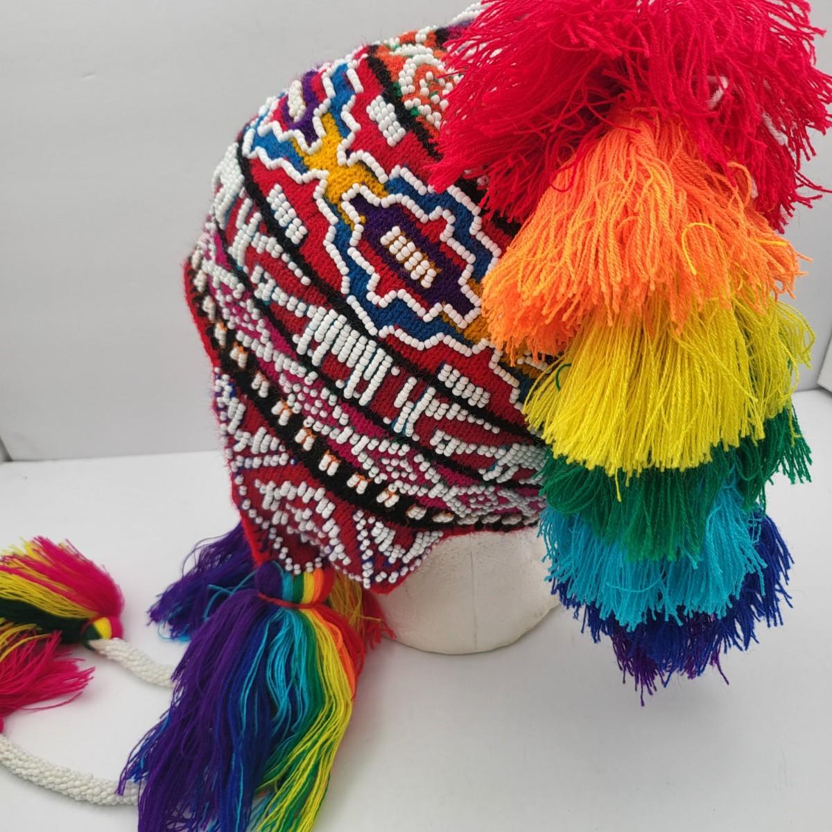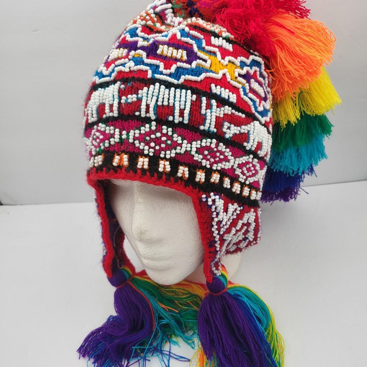 Peruvian Hand Beaded Rainbow Tassel Beanie