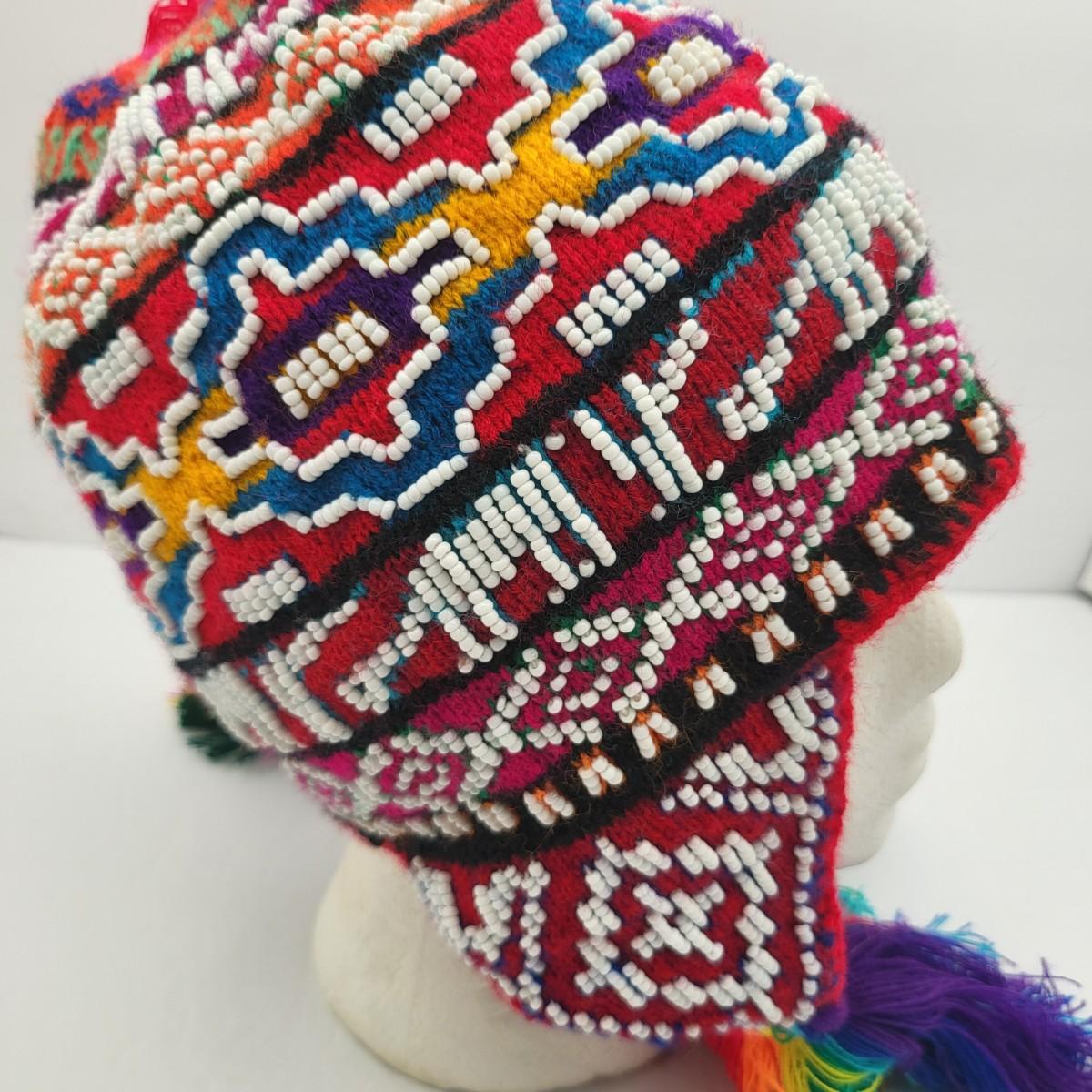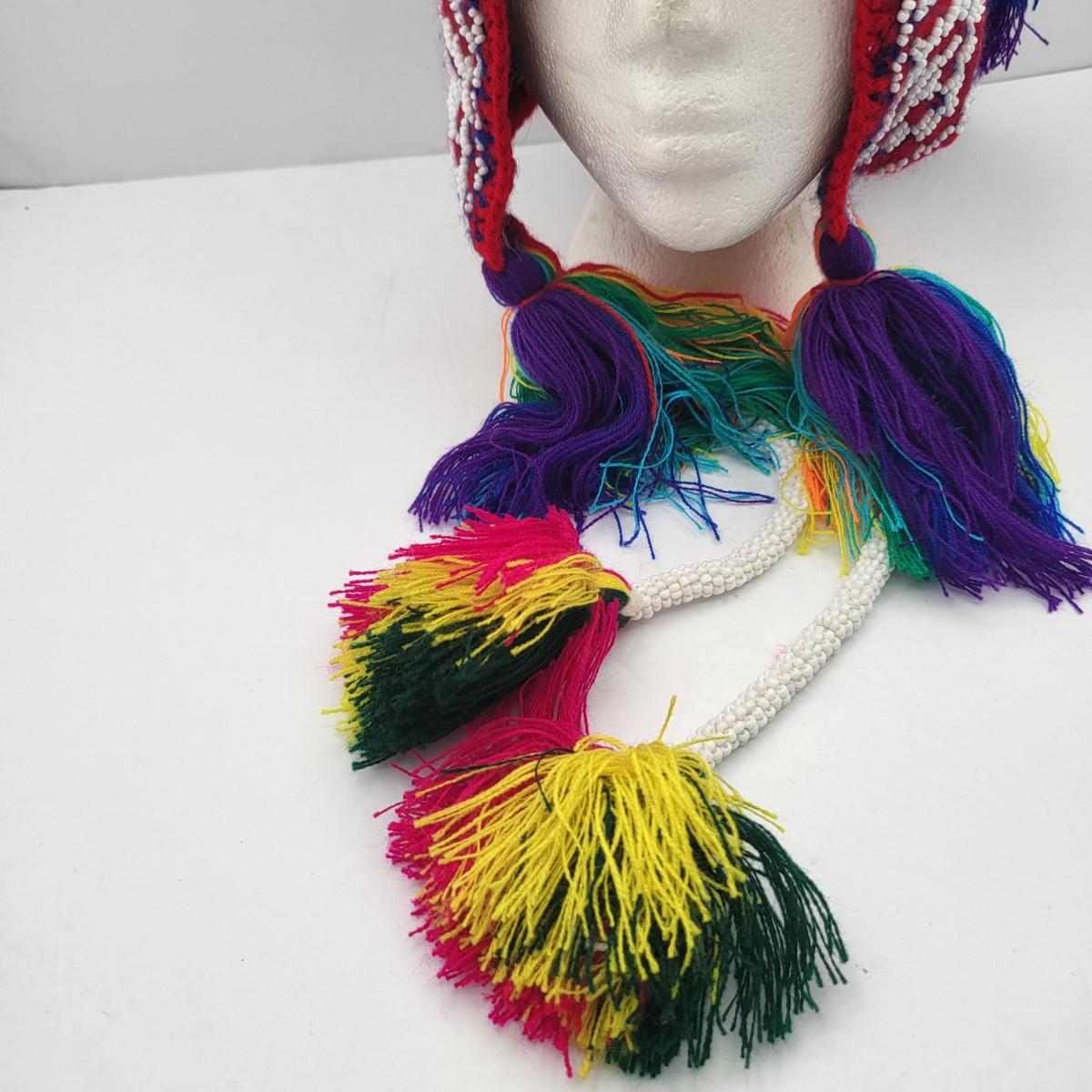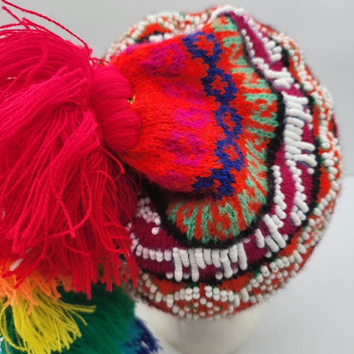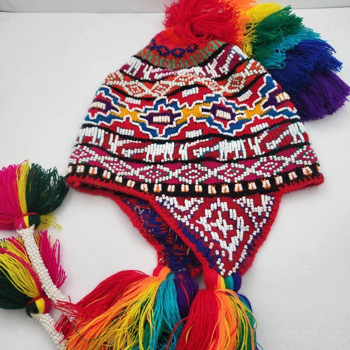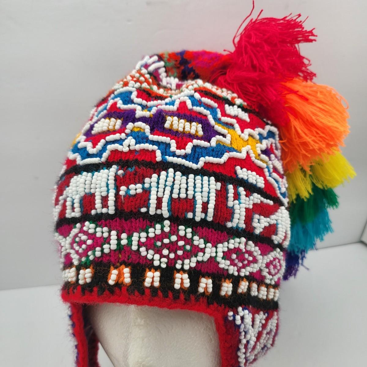 Peruvian Hand Beaded Rainbow Tassel Beanie