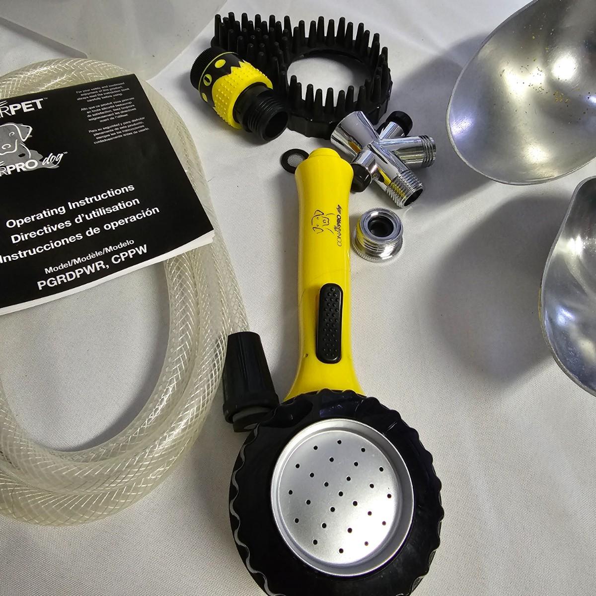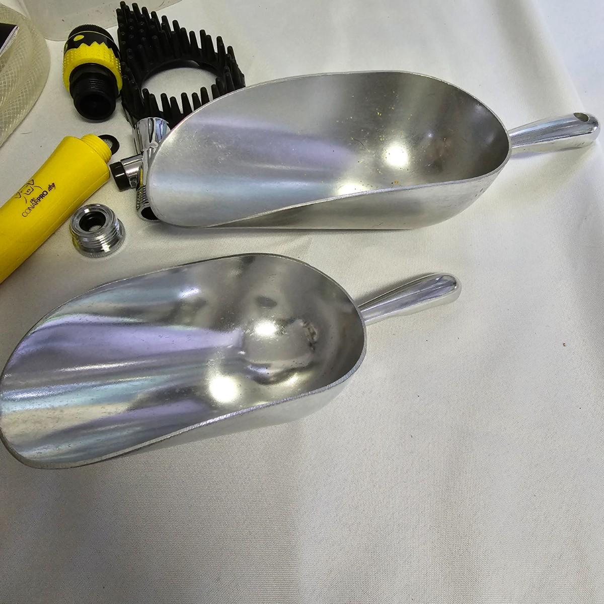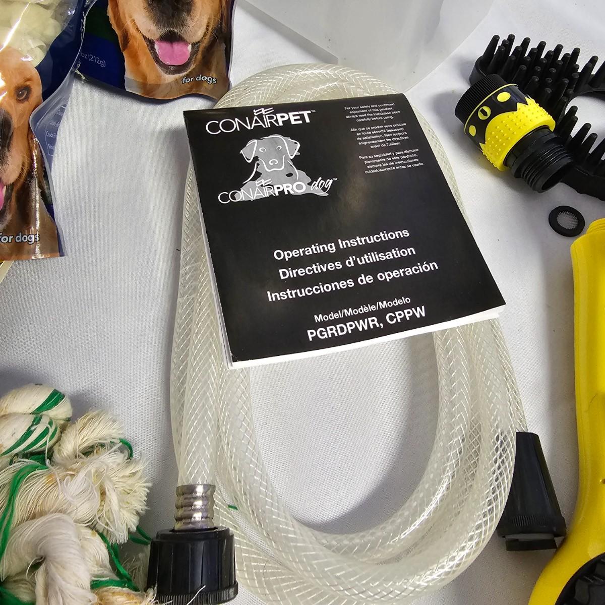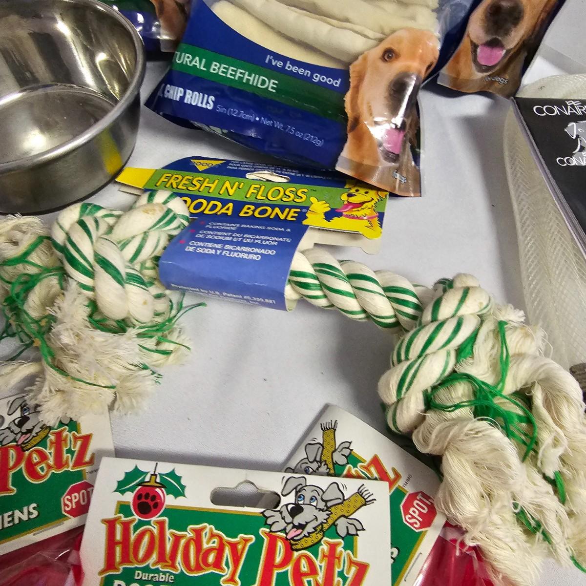 Multiple items for rover! Rawhide chews, rope chew, stainless steel food and water bowls, 11"D is the largest. Squeaky round toys, food scoops and storage containers; the largest is 45 qt. Conair Pet shower unit with hose and shower head. Two food/water bowl elevated stands. See photos for details. Local pickup only.