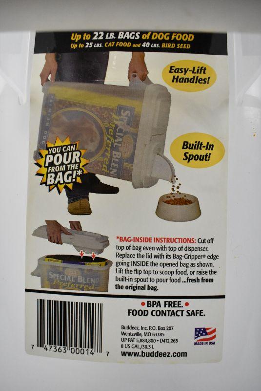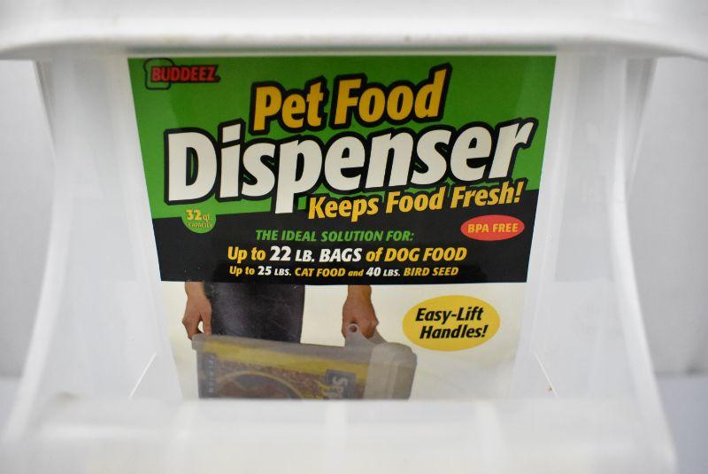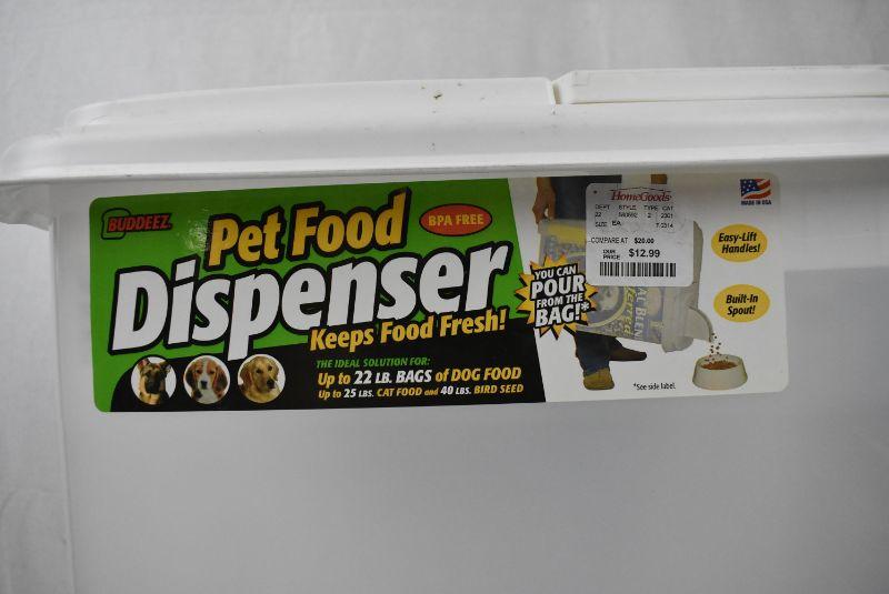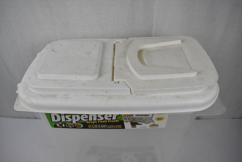 Pet Food Dispenser with Built in Spout. 22 lbs dog food 25 lbs cat food 40 lbs bird seed