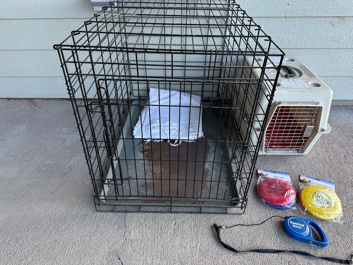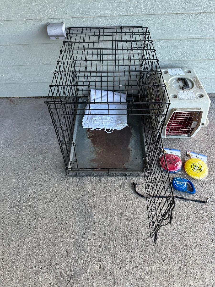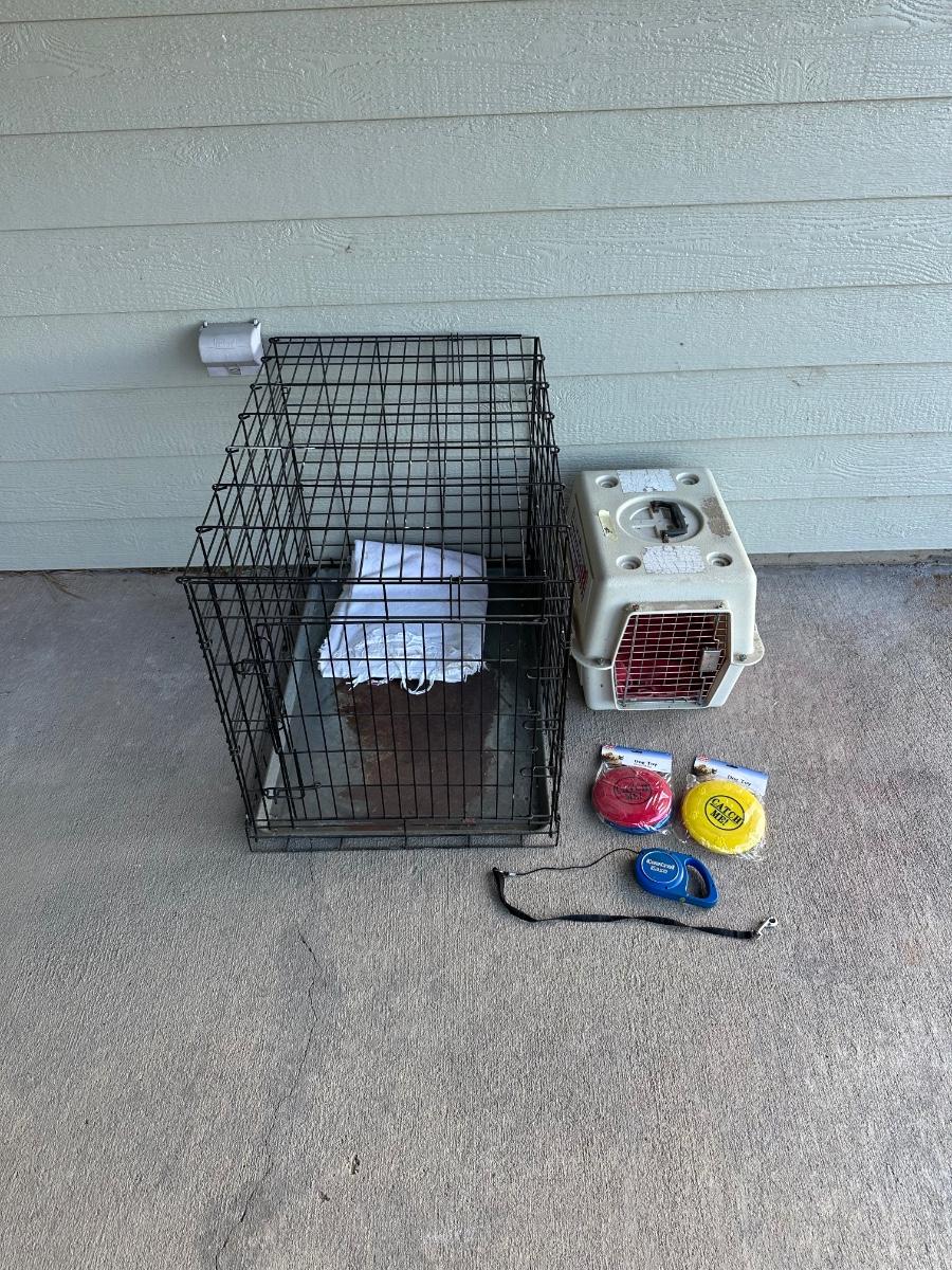 PET KENNEL AND CARRIER PLUS RETRACTABLE LEASH AND TOYS