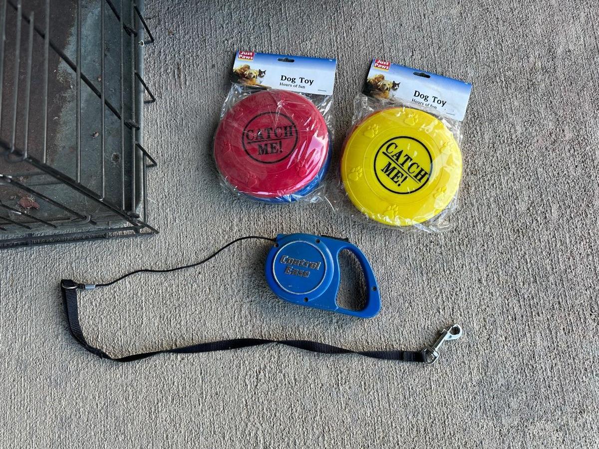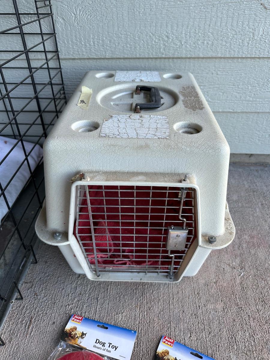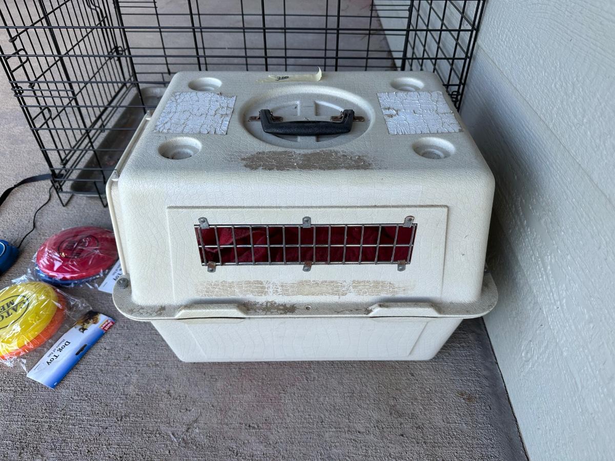 PET KENNEL AND CARRIER PLUS RETRACTABLE LEASH AND TOYS