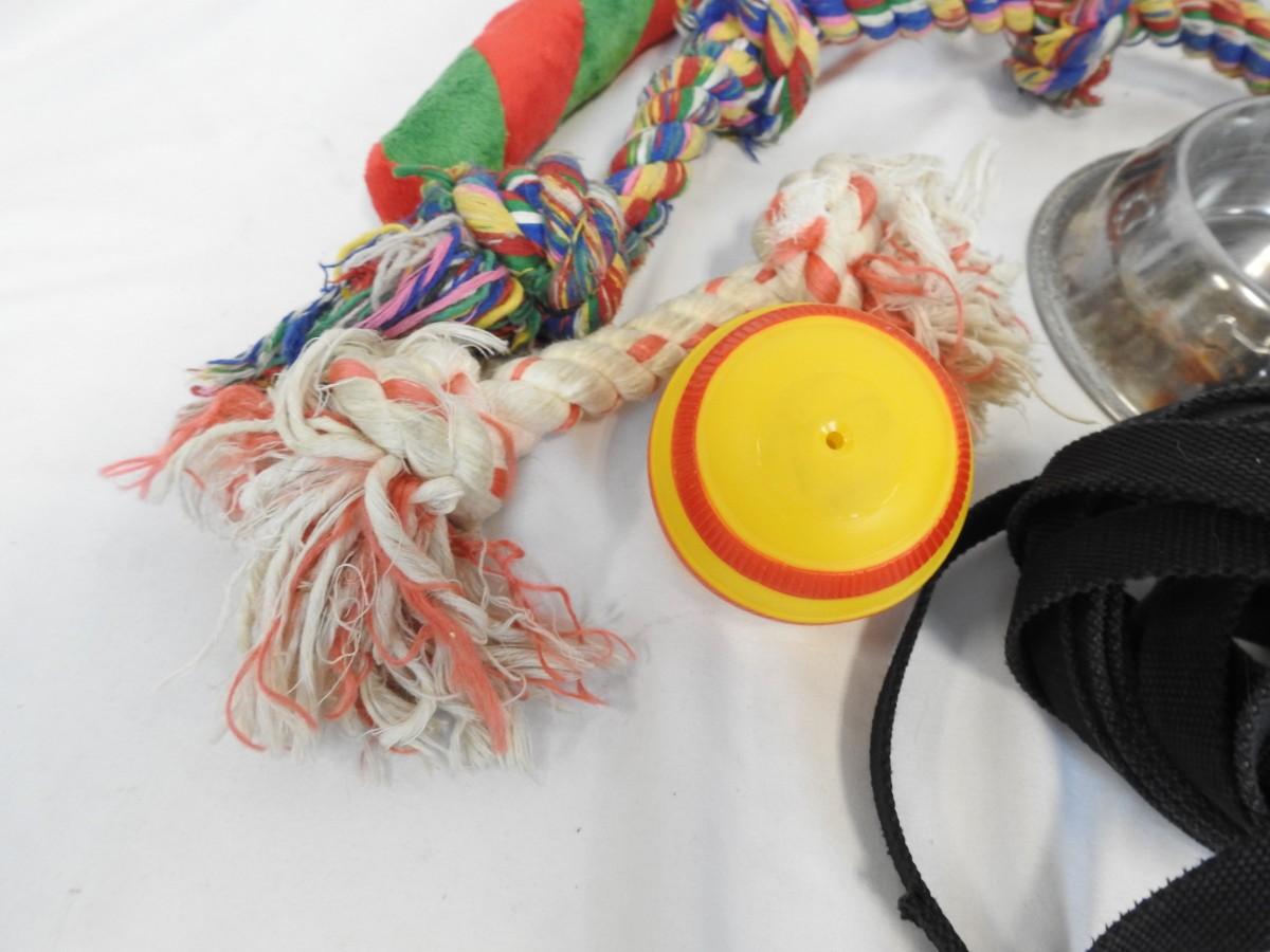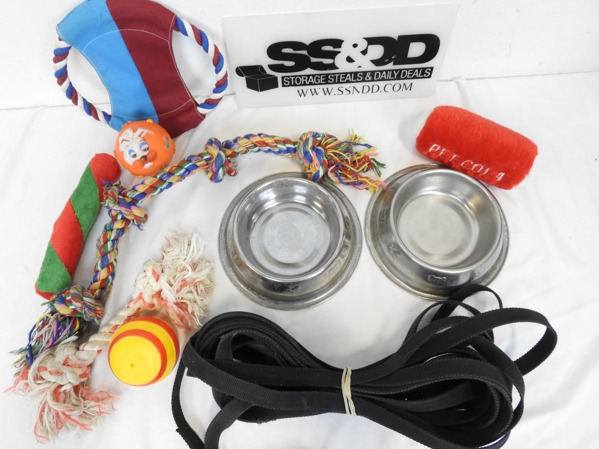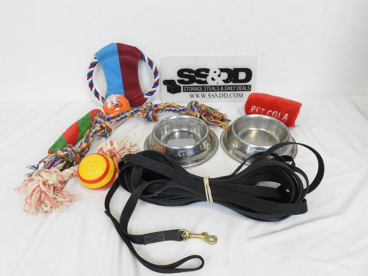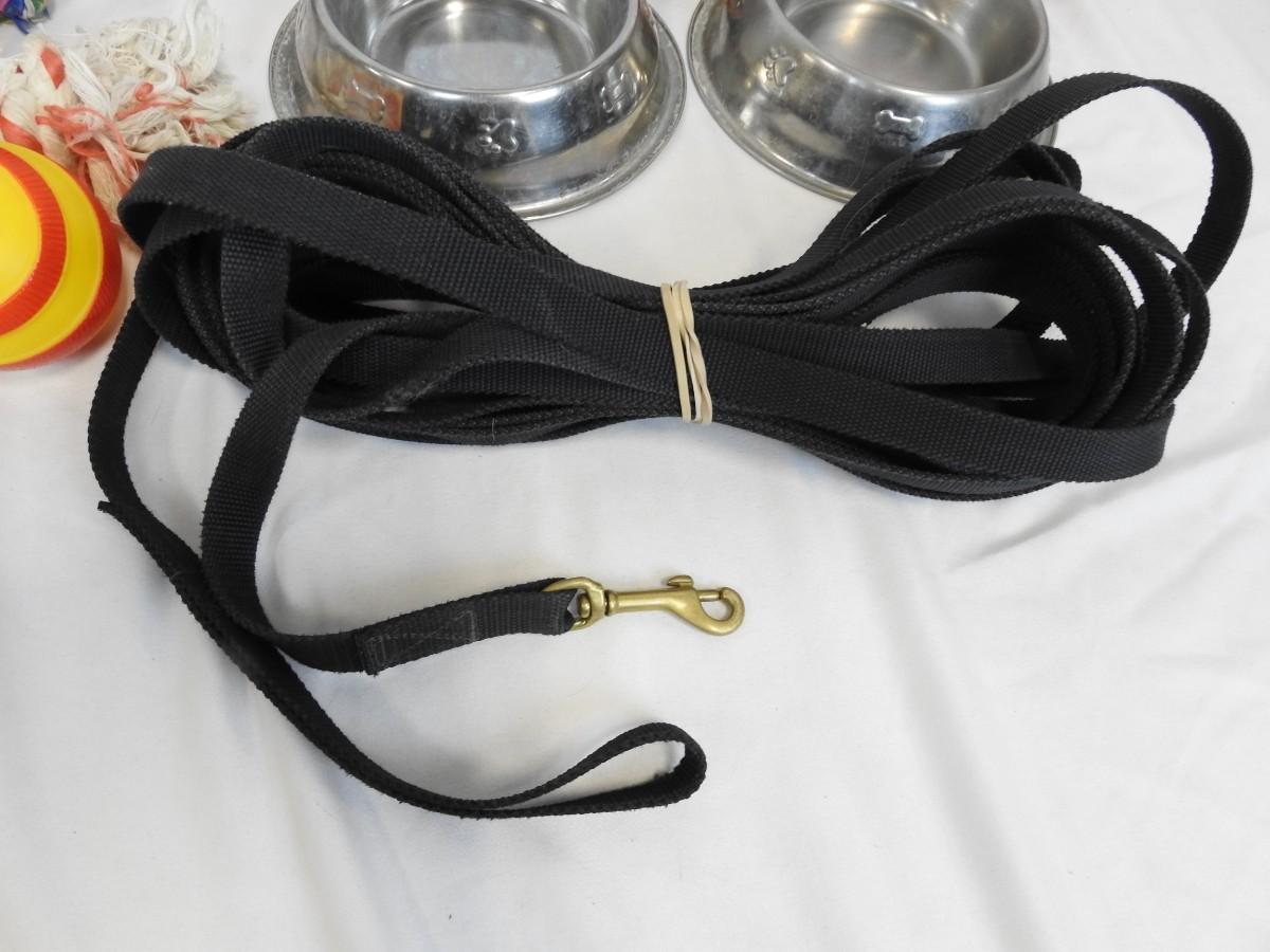 Pet Lot:  45 ft Dog Leash Clip on, Dog Bowls, Toys