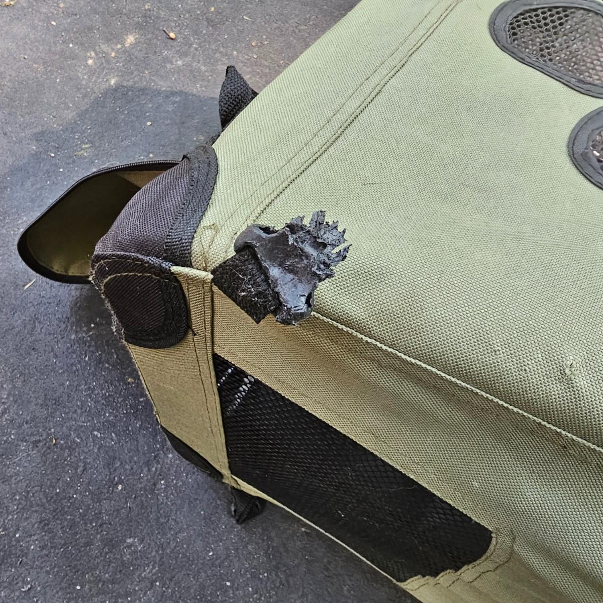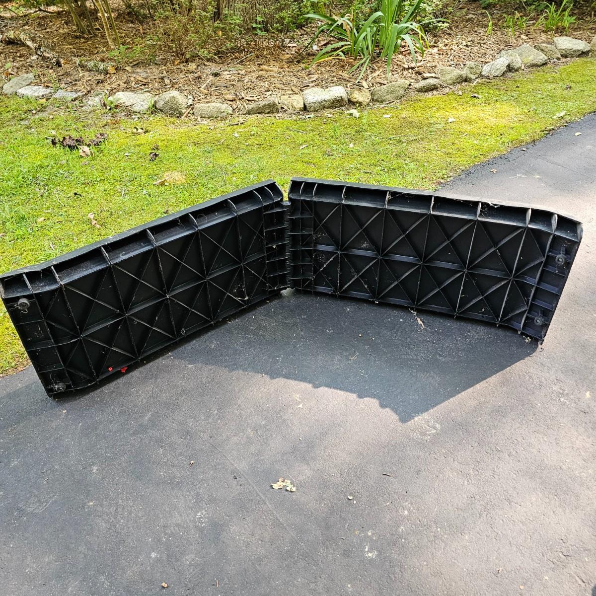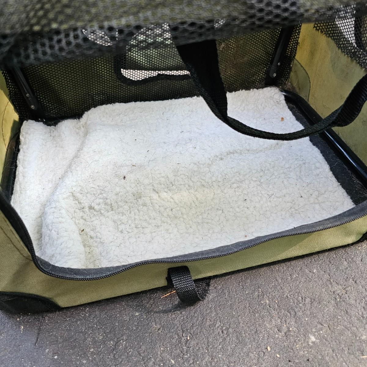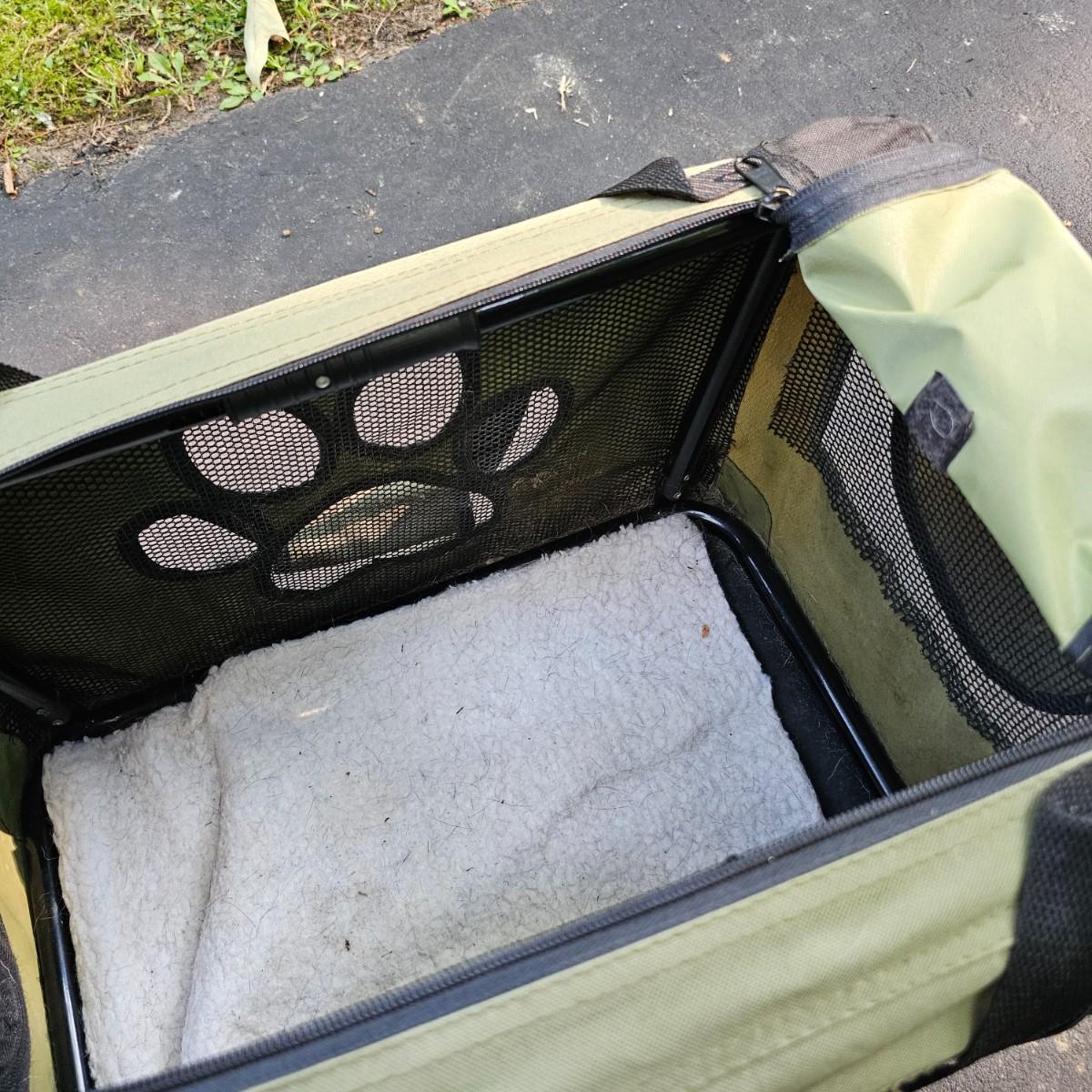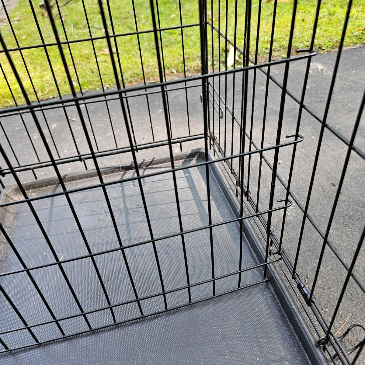 Plastic Folding pet accessories ramp by Solvit measures 61" x 16" x 4"H open, 30.5" x 16" x 8"H closed. Small size wire cage folds flat for storage, has divider piece, and bottom removable tray. It measures 17" x 24" x 19"H. Pet carrier is by Expawlorer, has multiple openings and ventilation. Measures 18" x 14" x 15"H open, 16" x 19" x 5"H folded flat. Securing strap to hold closed has been compromised. See photos for details. Local pickup only.