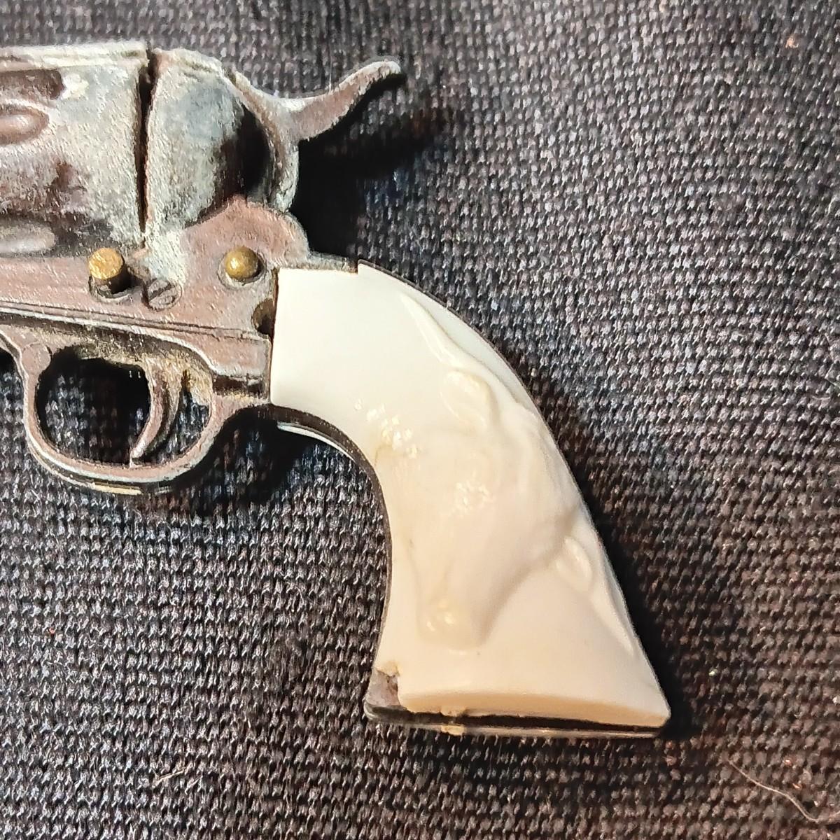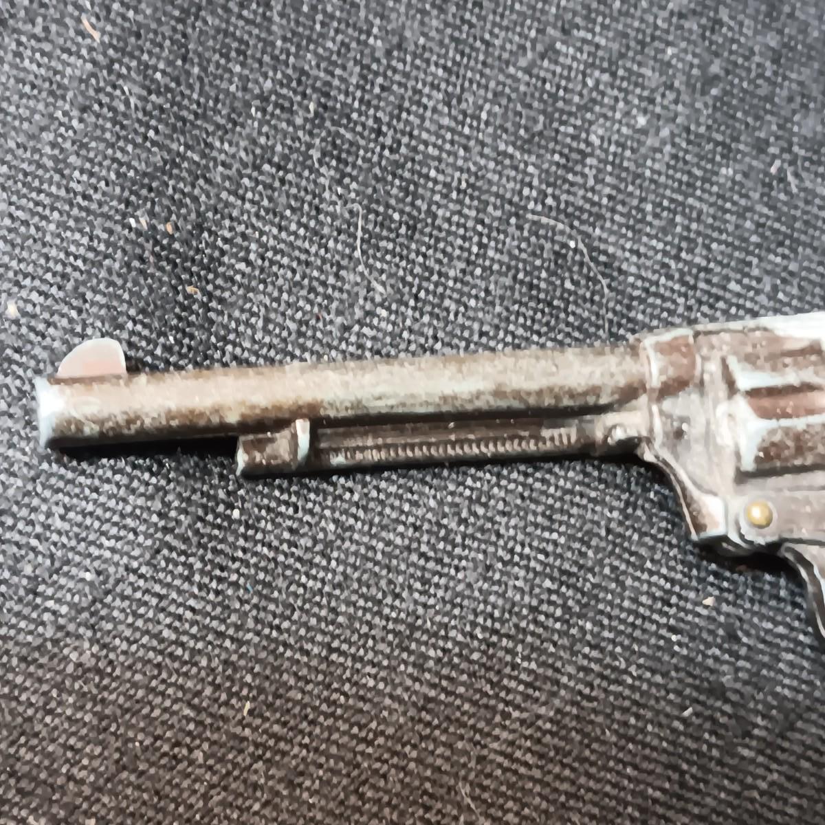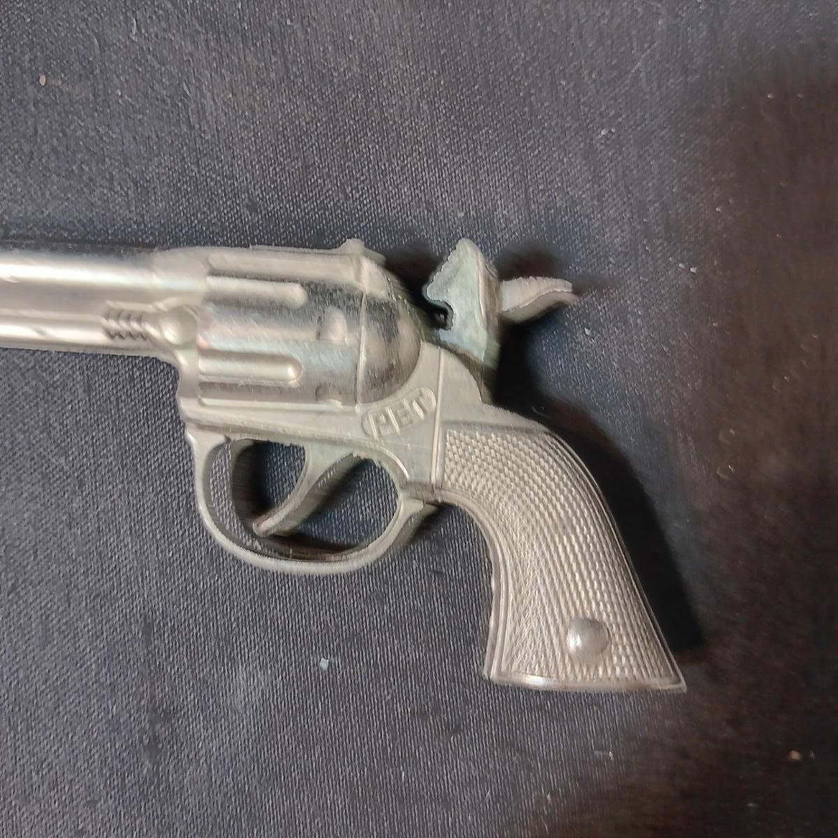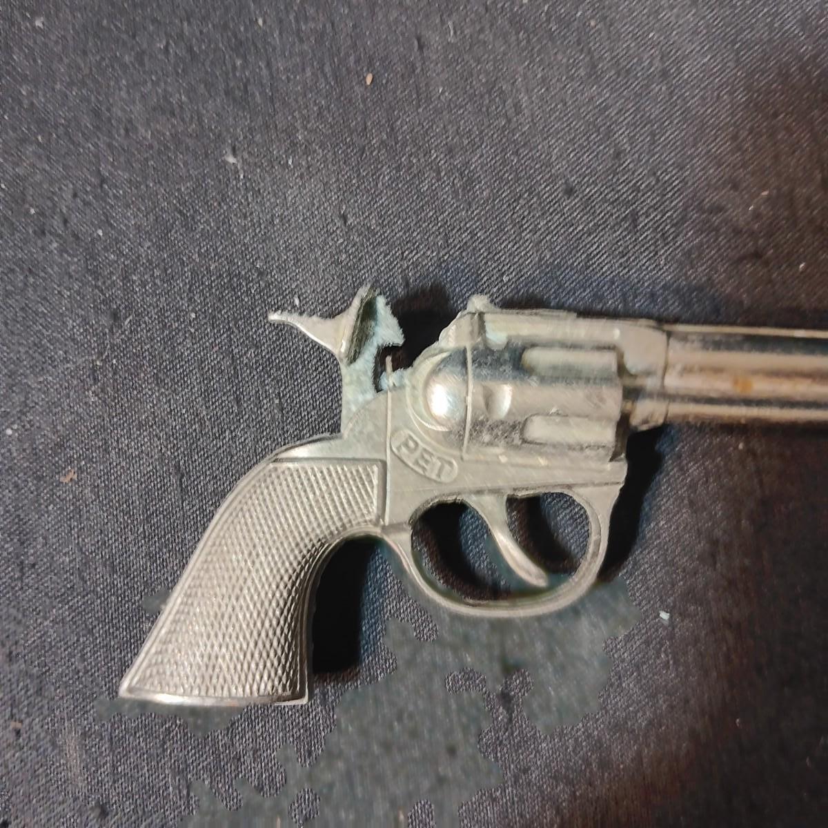 PET TOY CAP GUN WITH A BOX OF ROLLED CAPS AND A SMALLER METAL TOY GUN