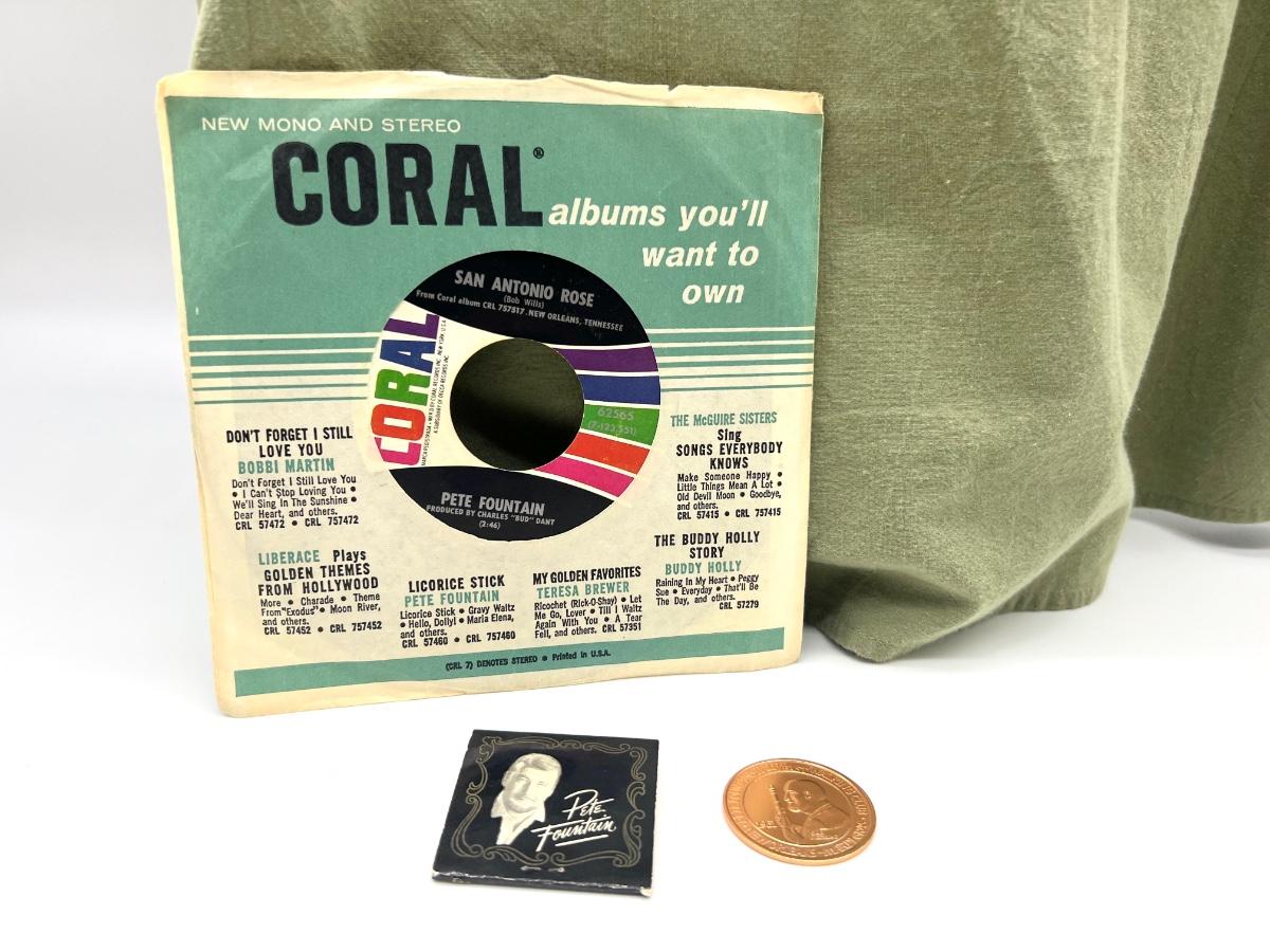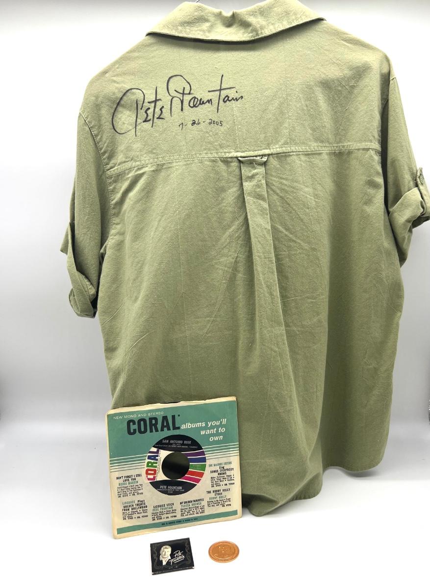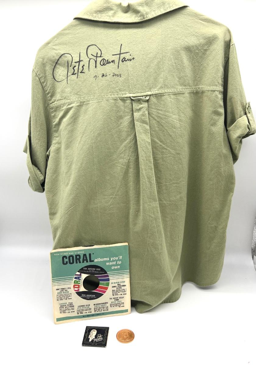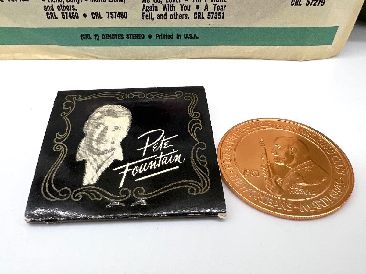 Pete Fountain Autographed Shirt Signed on 7-26-2005. Also includes record , matches and doubloon .