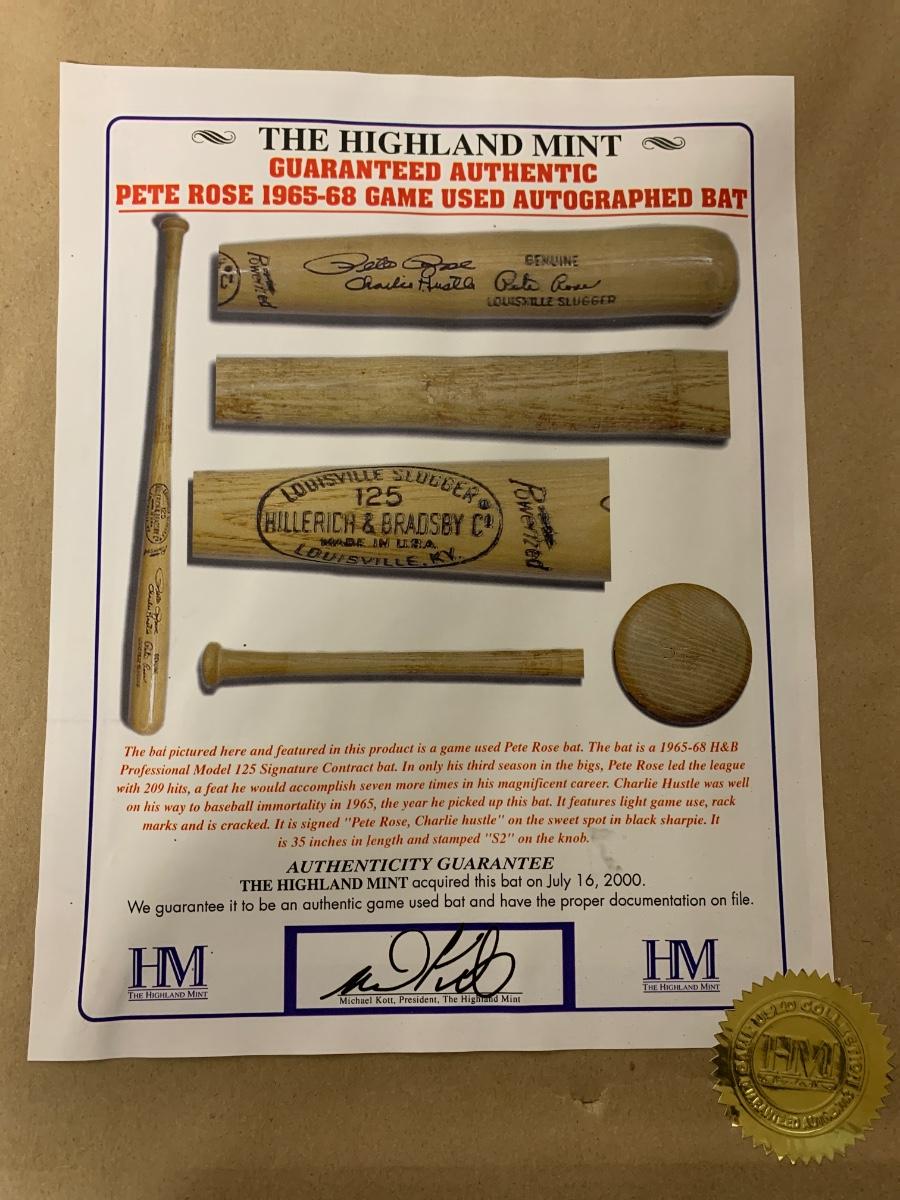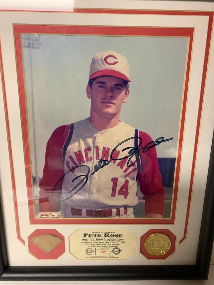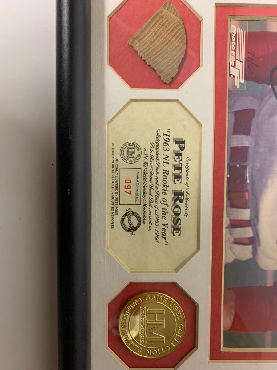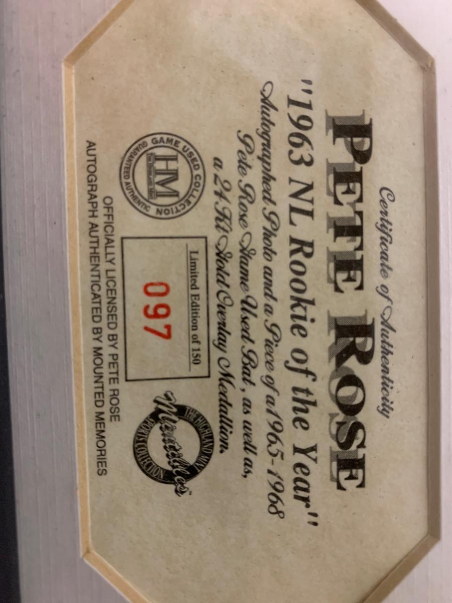 Very collectible Pete Rose signed photo limited edition with coin and bat fragment
