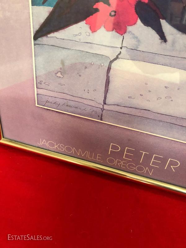 Poster is signed in pencil. Measures 25"x19", framed under glass.