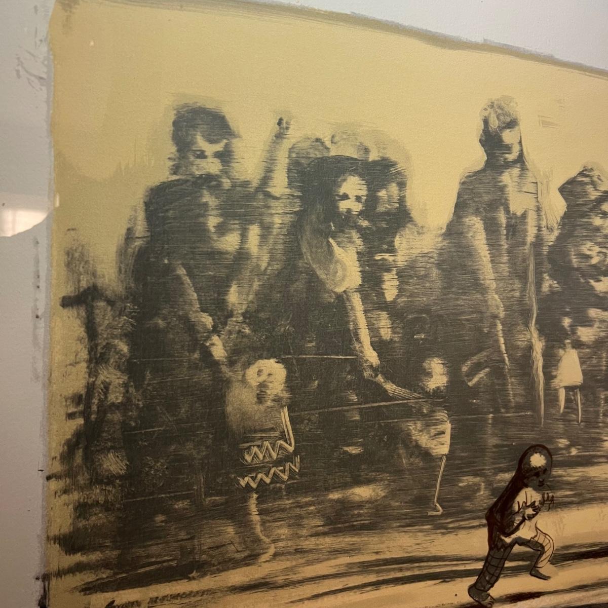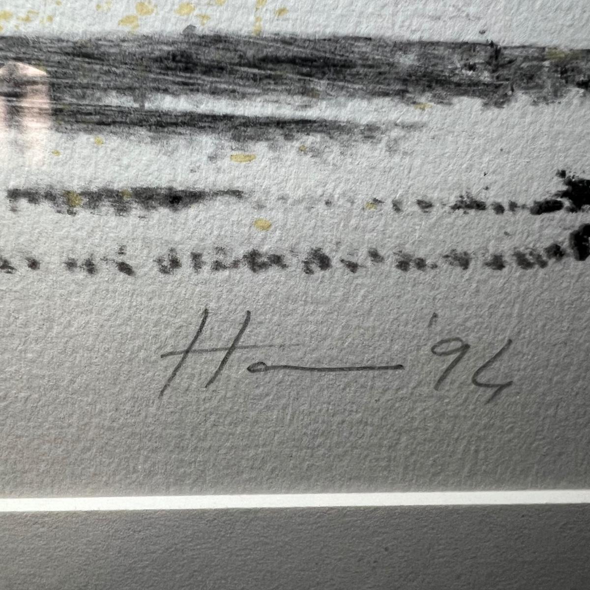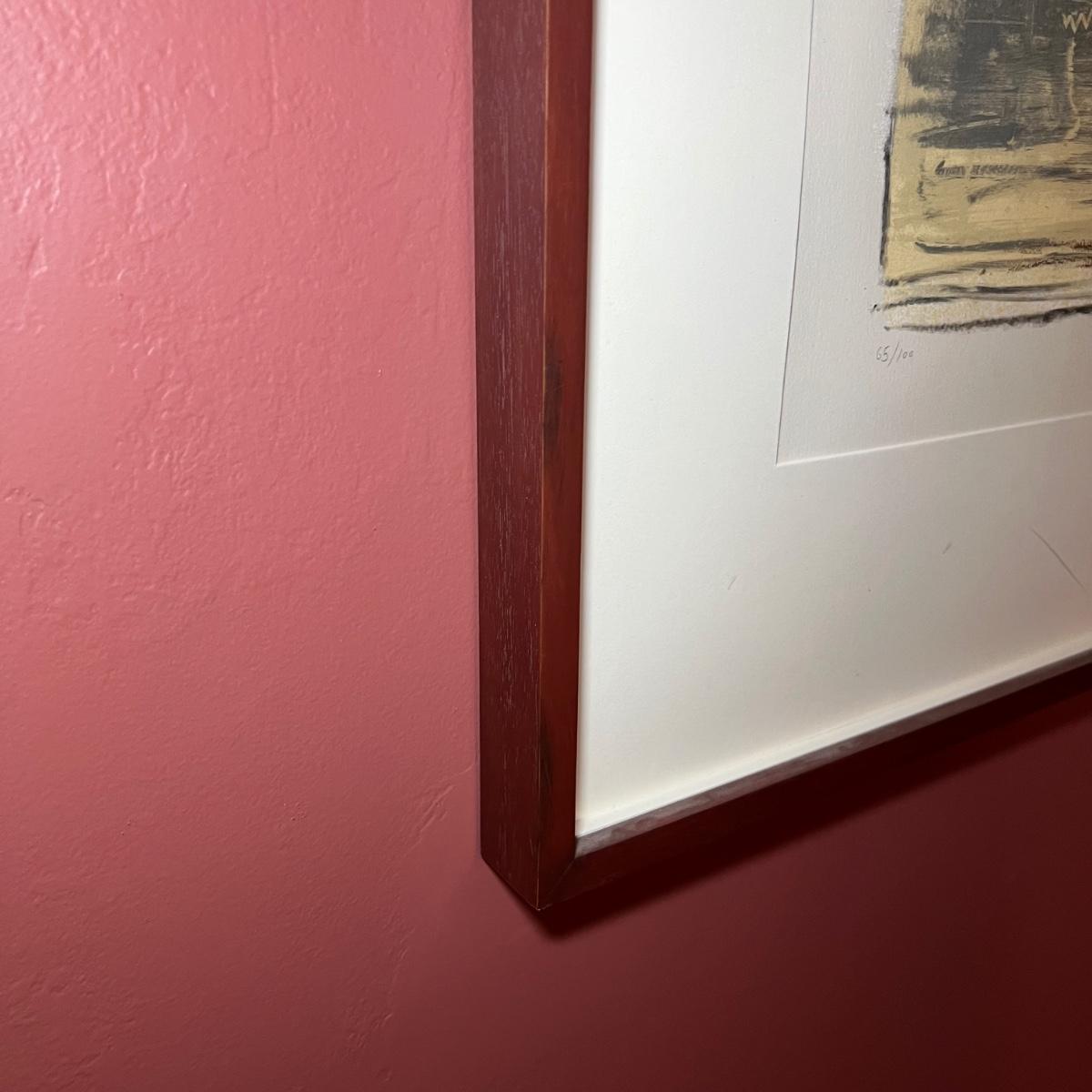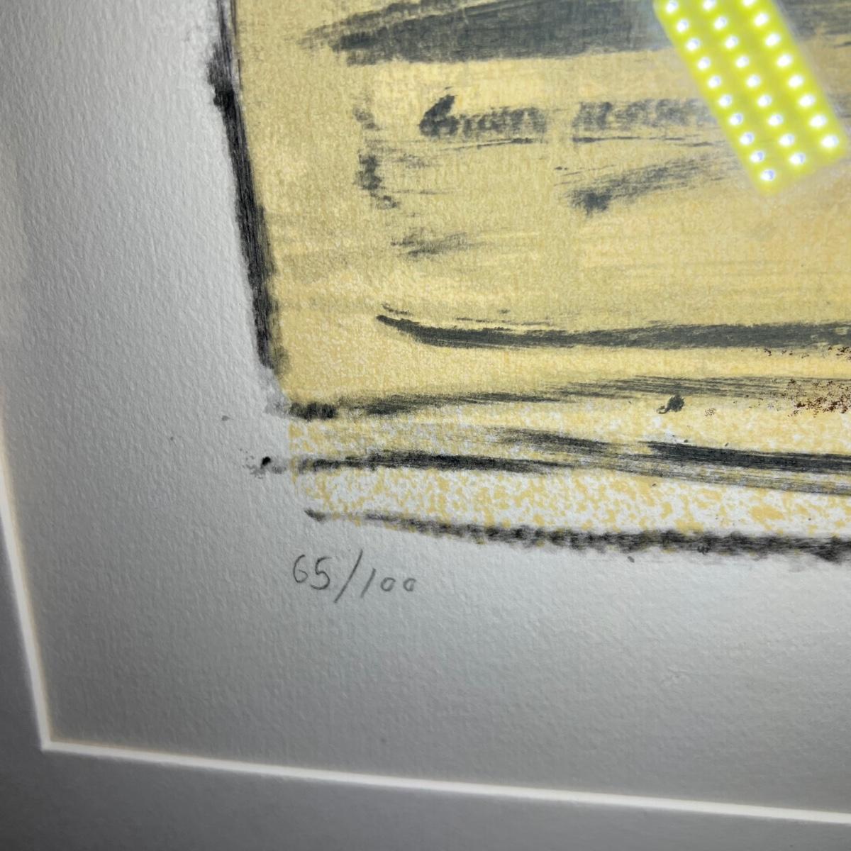 This large print is by Peter Howson (numerous lots in this sale by this artist). It is titled “Bon Bon Alley”, number 65/100 and is pencil signed. Matted and mounted in a wood frame with plexiglass; note there is a scratch in the lower left section, see images.
