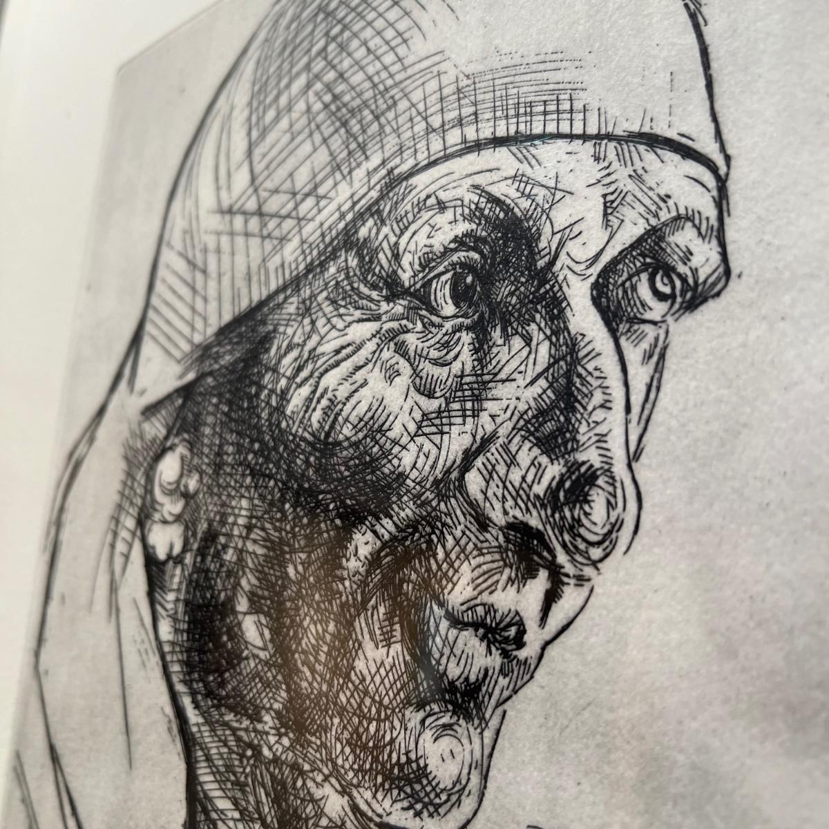 This lot is one of three lots in this sale which each have a Limited Edition print of an etching by Peter Howson; All three of these prints are mounted in matching frames and there is also another lot with his work in this sale which is titled “Helmet XII”.