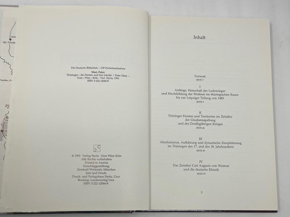 Peter Mast. THURINGEN Die Fursten und ihre Lander. Graz; Wein; Koln: Verlag Styria 1992