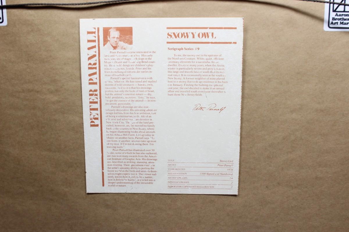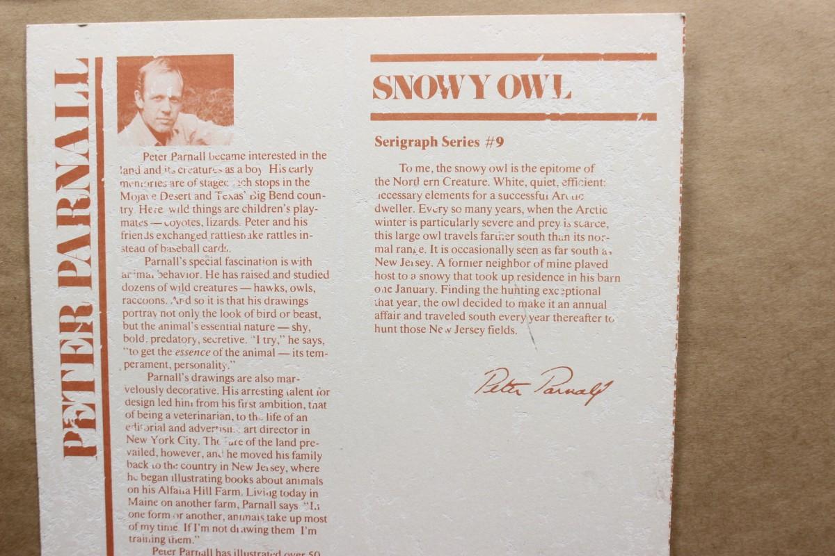Peter Parnall Snowy Owl Serigraph Series Framed Art Print 1978 Limited Edition