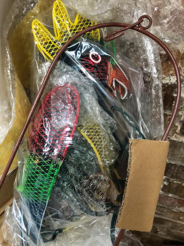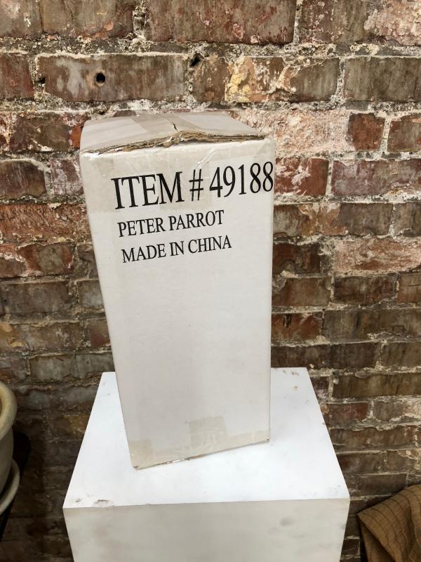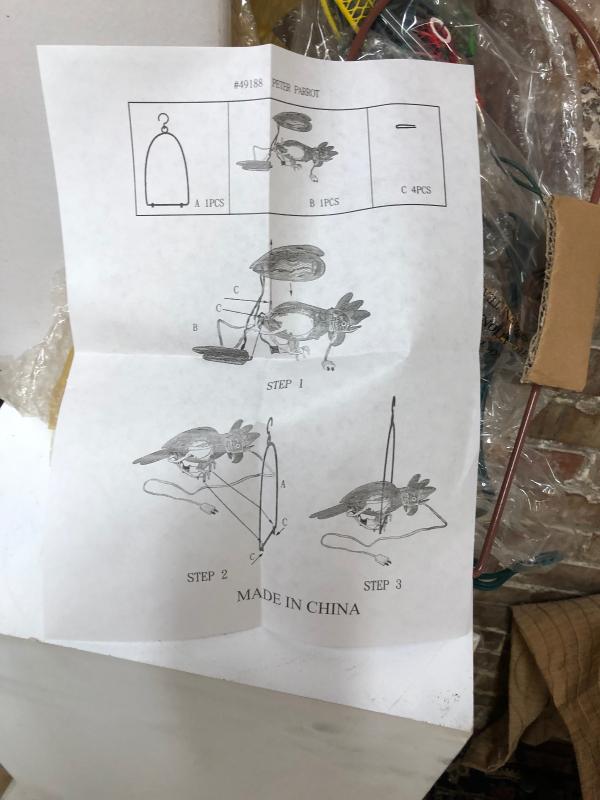 With instructions for assembly here is a PETER PARROT hanging metal arrt sculpture...for yard or patio...in box...