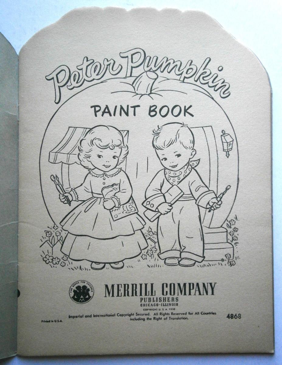 "Peter Pumpkin" Coloring Book by the Merrill Company copyright 1950, 11 1/2x8 1/2 inches, unused.