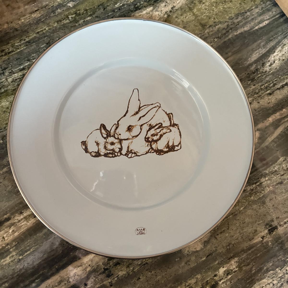 This lot of Peter Rabbit & Golden Rabbit Dishware includes 4 items: 2 plates, a bowl, and small children's mug. Both plates have diameters of 8.5".