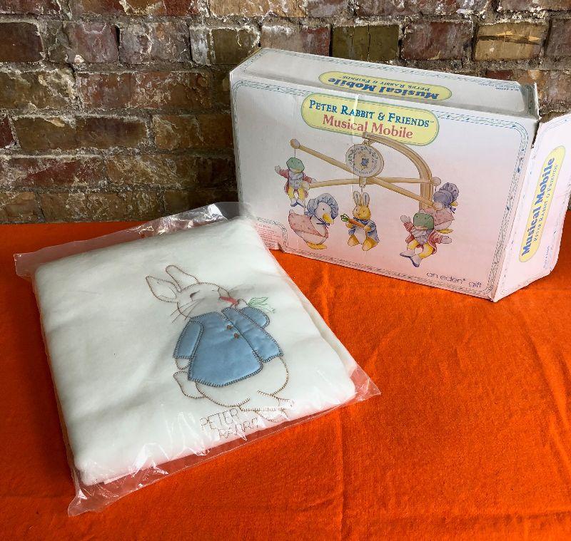 New in the box here is a Peter Rabbit & Friends musical mobile and infant's blanket...
