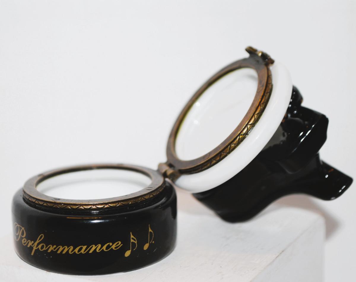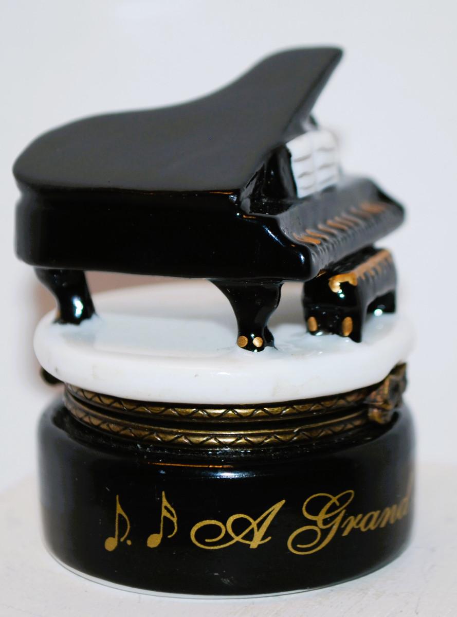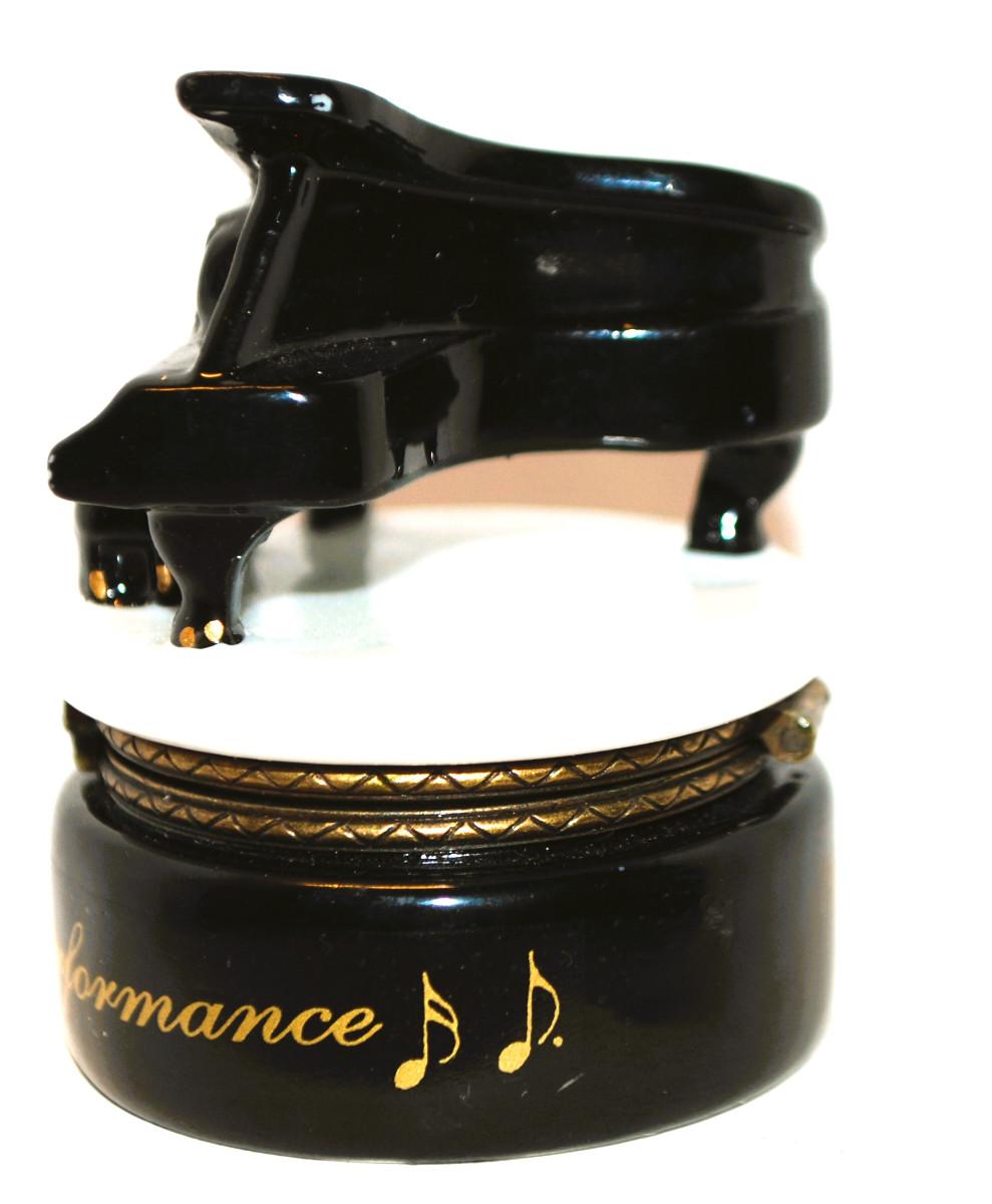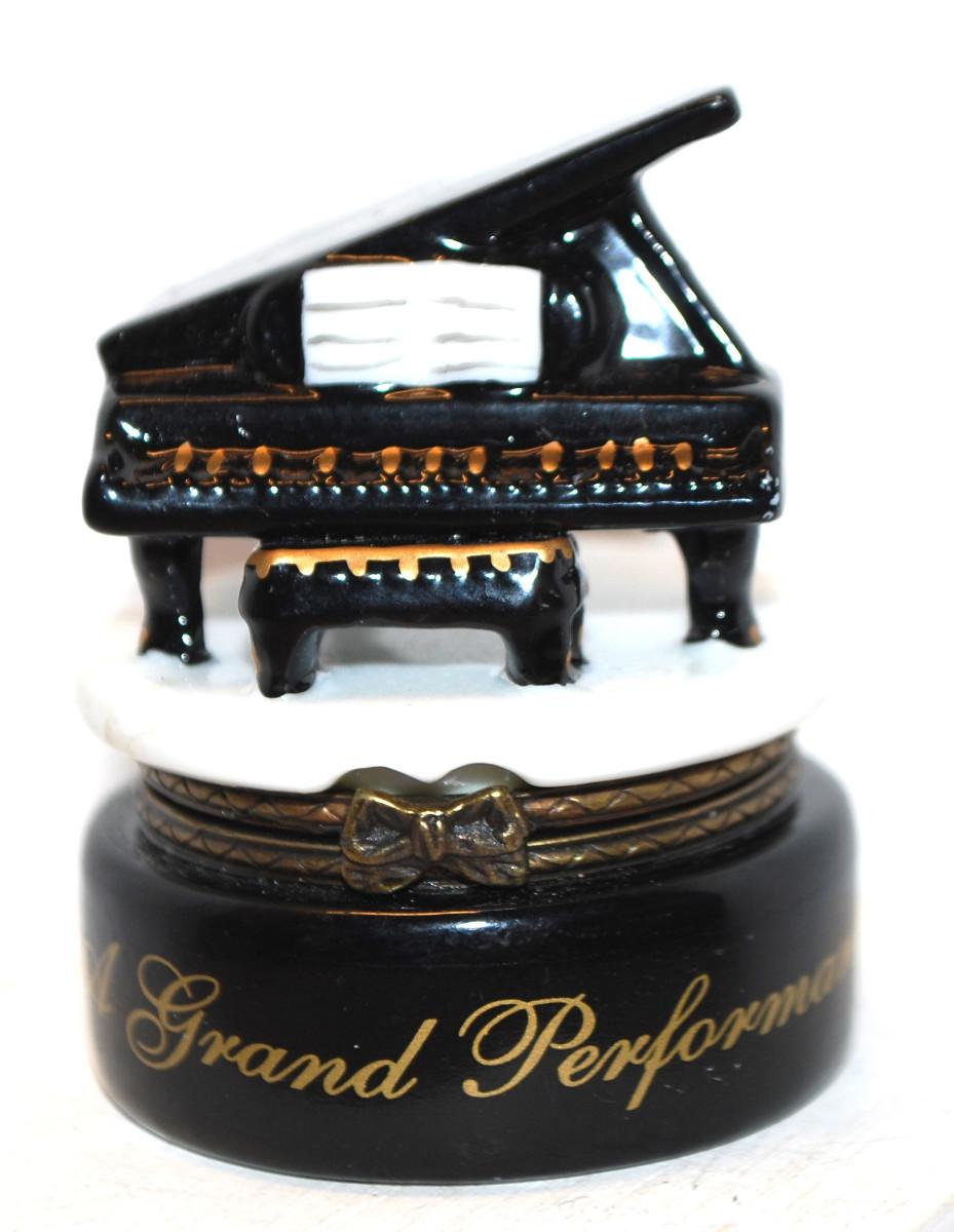 Petite "A Grand Performance" Black & White Piano Trinket Box 2¼" H x 1 ¼" Diam.