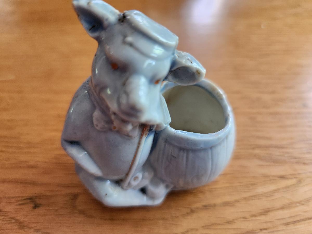 This auction lot is for a Petite Blue Piggy Planter. This unusually small planter would be perfect for a small succulent plant to sit on your desk or windowsill. Where you gonna find another.