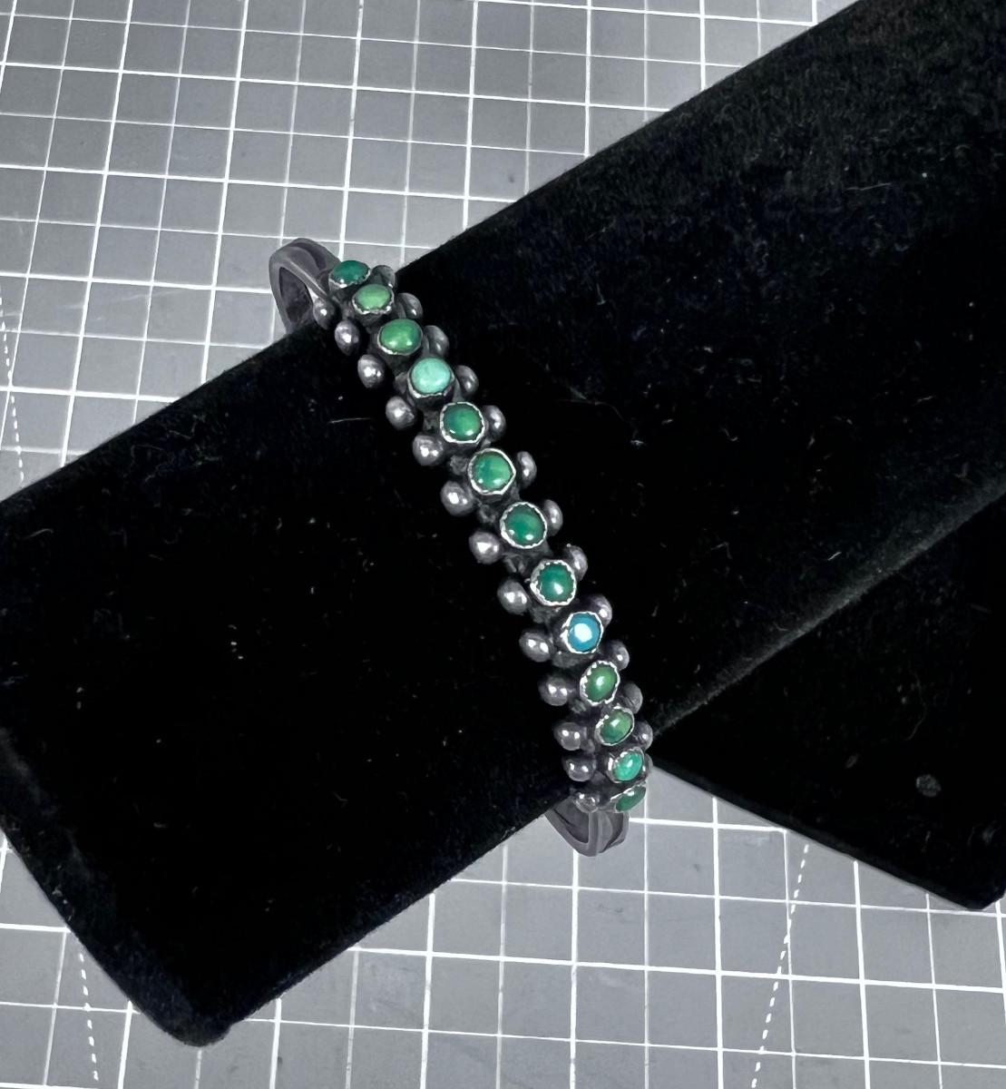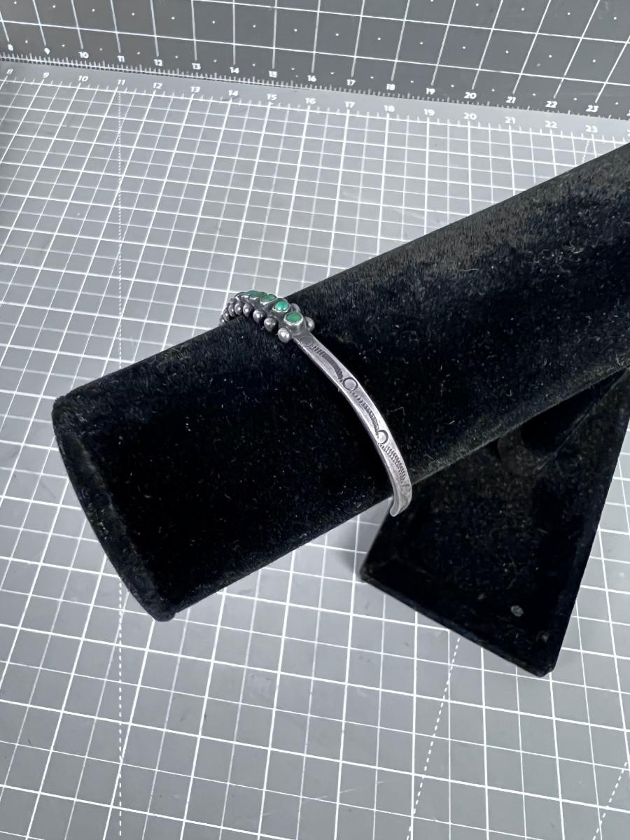 Petite / Delicate Silver and Turquoise Old Pone Bracelet