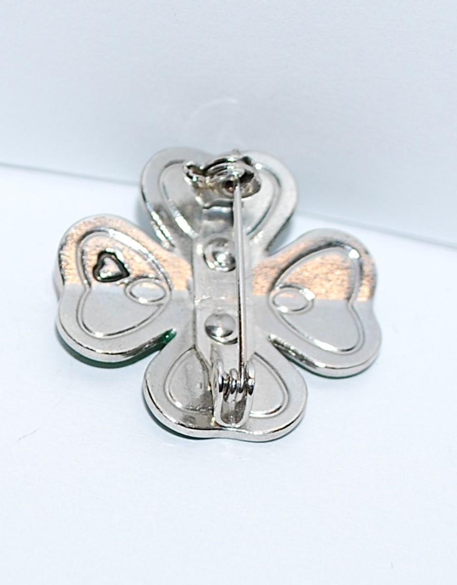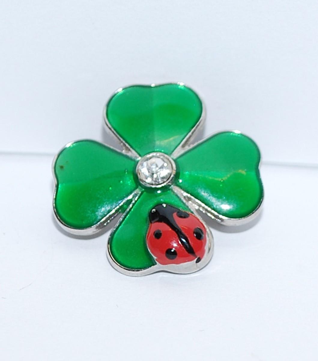 Petite "LADYBUG & CLOVER" BROOCH (1" Diam.) with Bright Green Leaves & Clear Center Stone Accents on a Silver Tone Setting