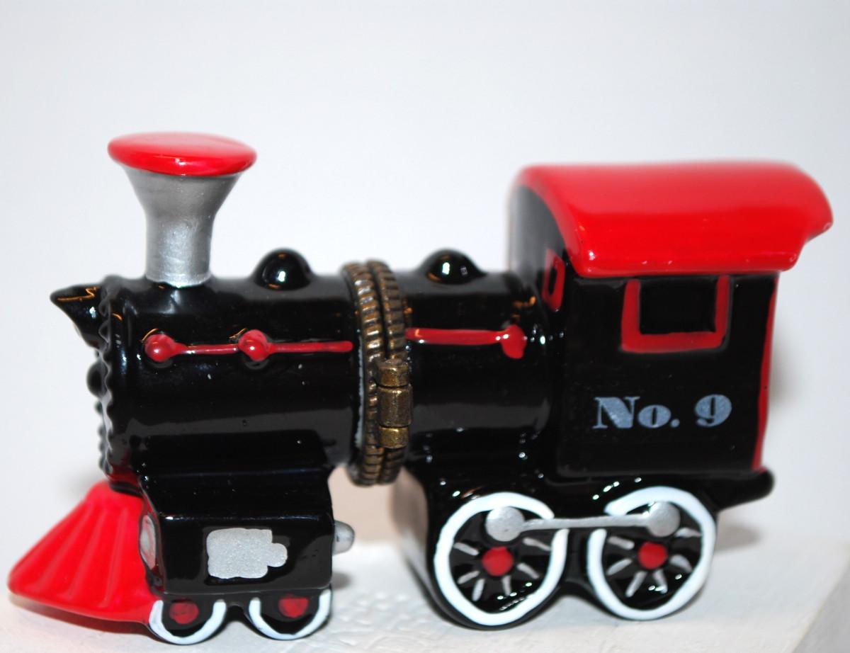 Petite Red & Black Locomotive Hinged Trinket Box 3" x 1 3/4"