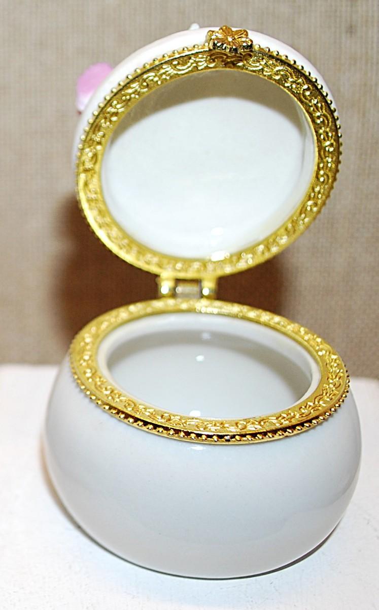 Petite Round HINGED Purple Violets Trinket Box 1½" Circ. x 2" H with Gold Tone Accents