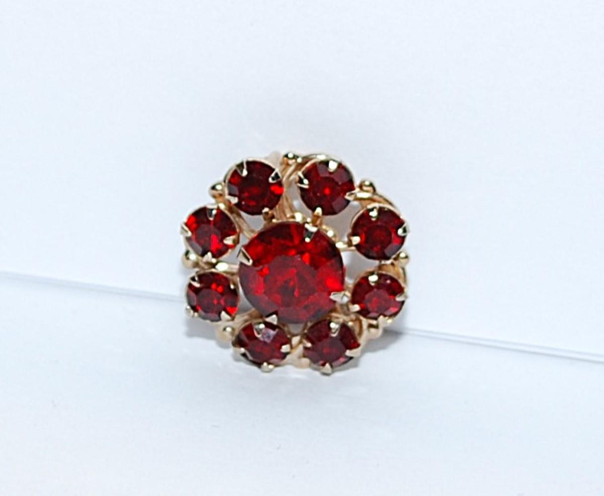 Petite RUBY RED BROOCH (¾" Diam.) with Deep RED Stones on a Gold Tone Setting