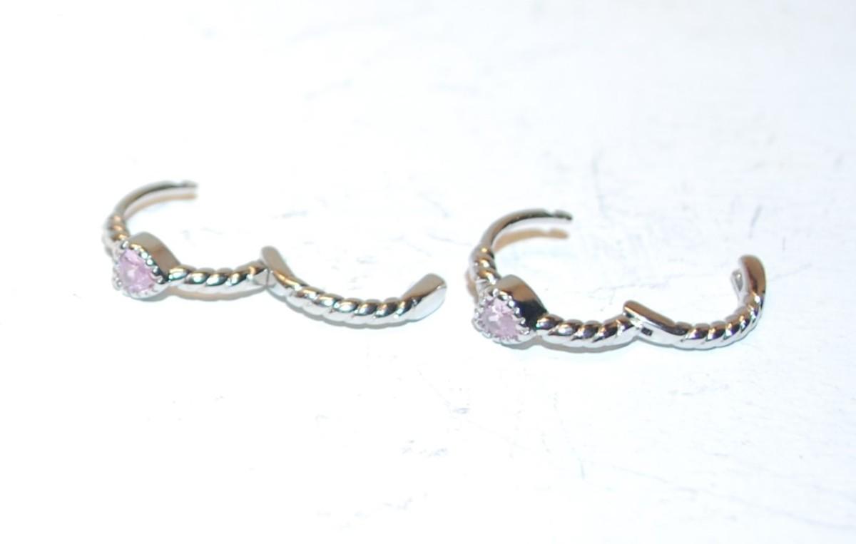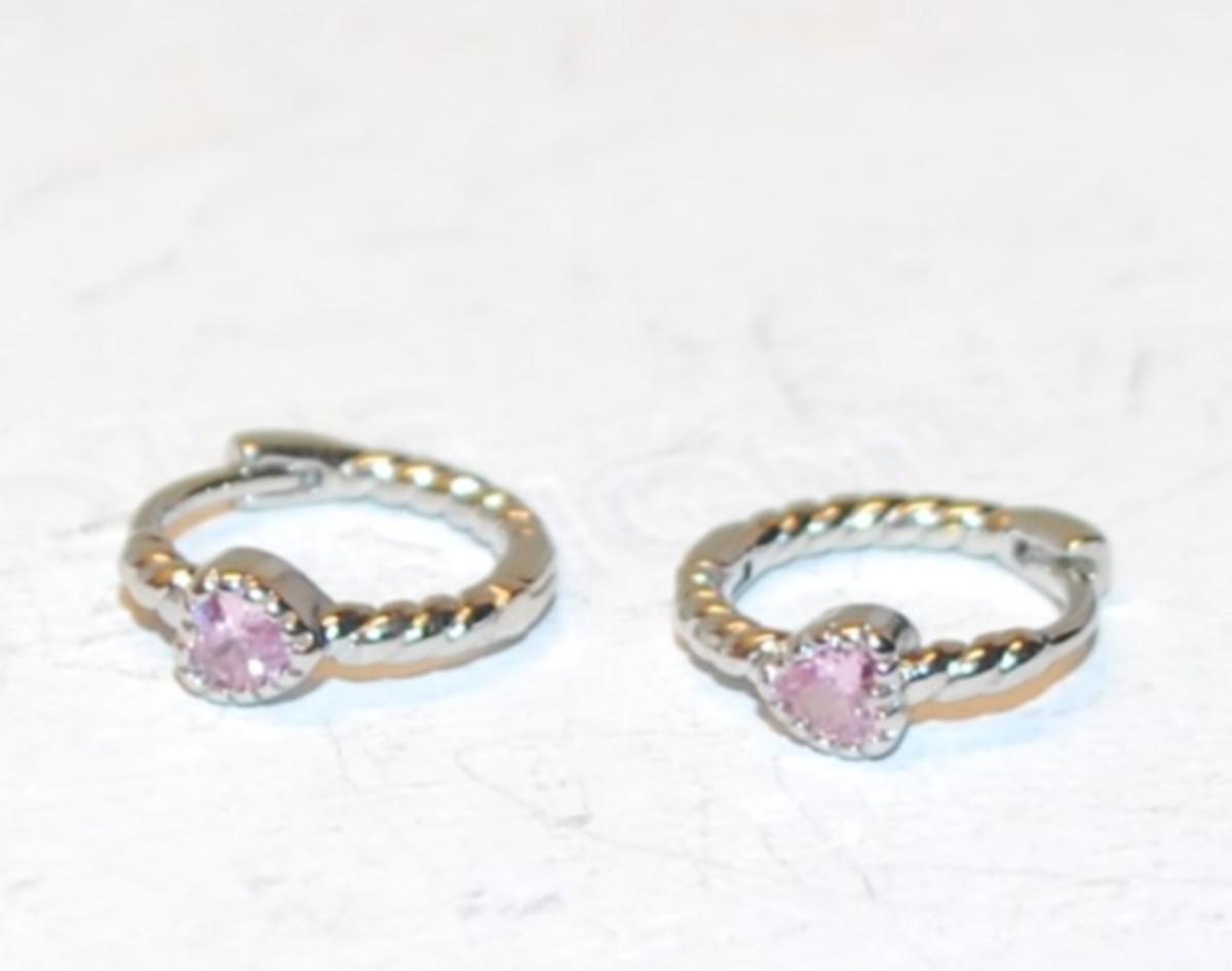 Petite Single Pink Stone & Swirls Earrings (½") Set with Huggie Style Attachments