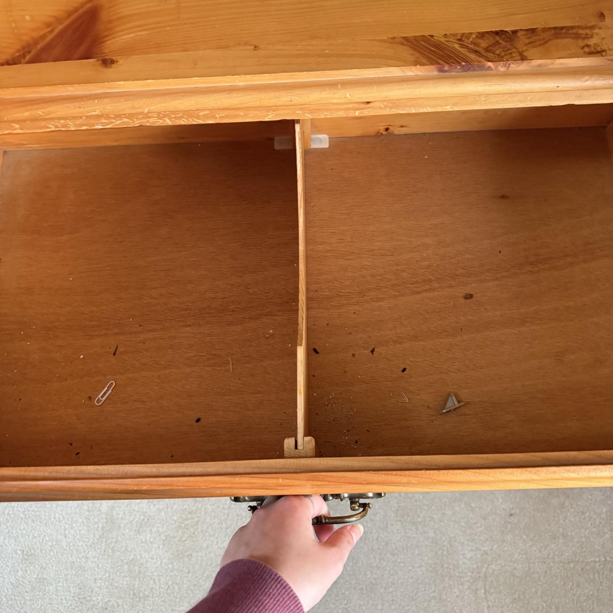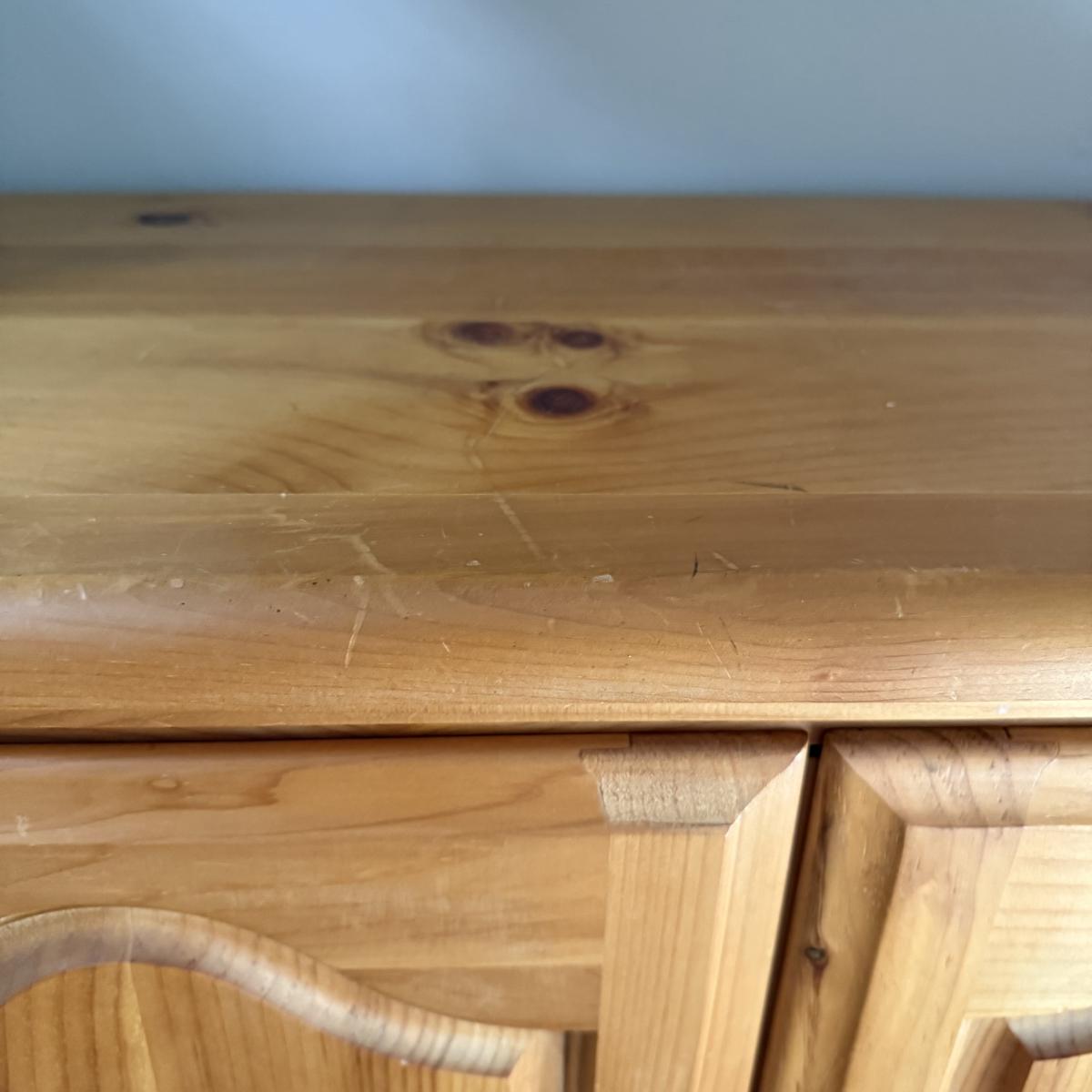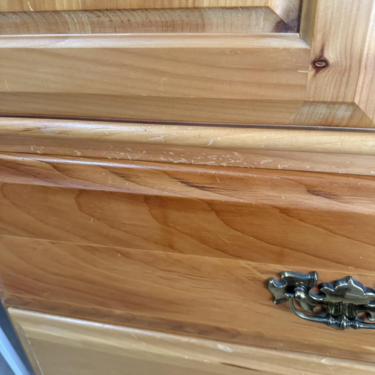 Small wooden wardrobe with three drawers on the bottom and a cabinet up top with three shelves. It measures 31.25” x 16” x 56.25”H. It does have a few surface level scratches to it, see pictures for details. Local pick up only. Winning bidder must bring assistance to help move and load this item due to its weight and/or size.