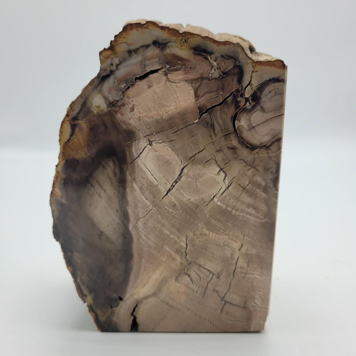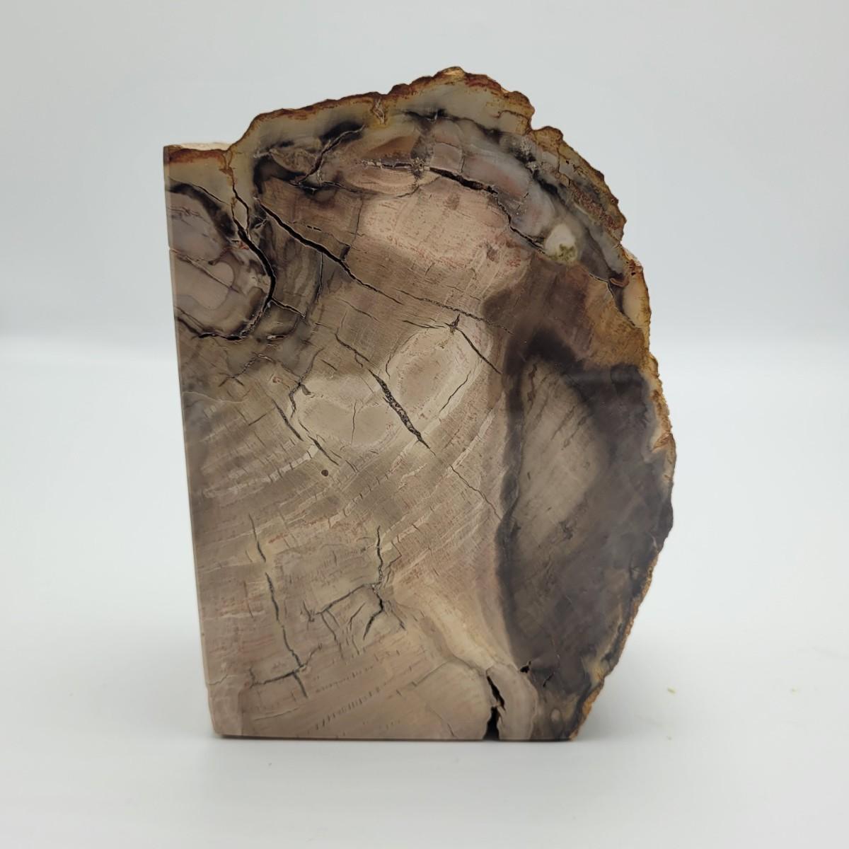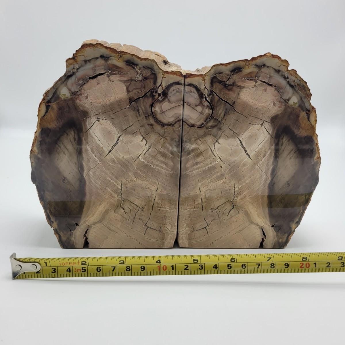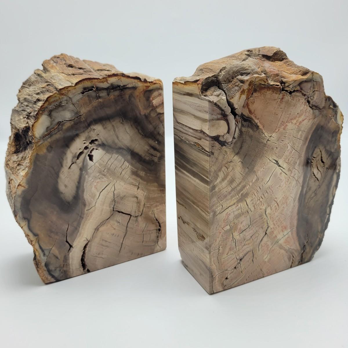 This lot includes two Bookends made from what appears to be petrified wood. The interior and exterior of the ancient tree have been turned into stone over time. It has been cut and polished to create two solid bookends. Individually the pieces measure 4.5" x 2" x 6"H.