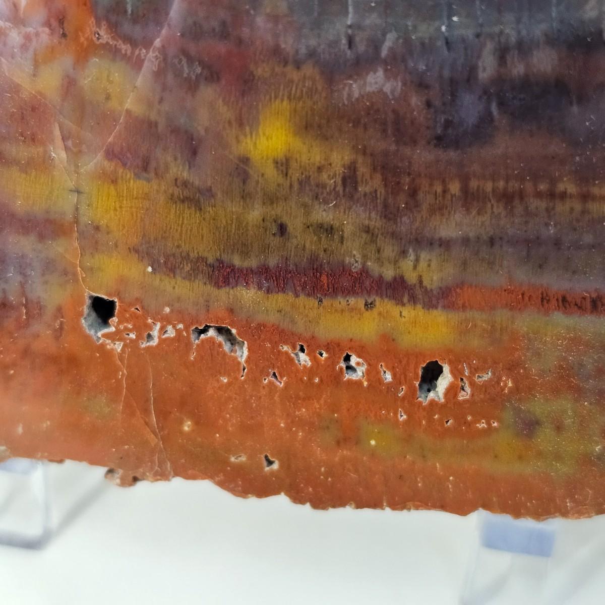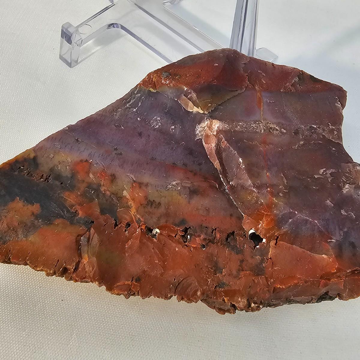 A dozen examples of different types of petrified wood. Some items in their natural state, others have been polished to highlight certain areas. Small half rounded piece appears to be petrified palm wood, with the tiny fibers showing through. Largest item is 5 5" x 4.5" x 2"H. Plastic stand included. See photos for details. Shipping available. All sales are final. No returns or refunds. Please bid accordingly.