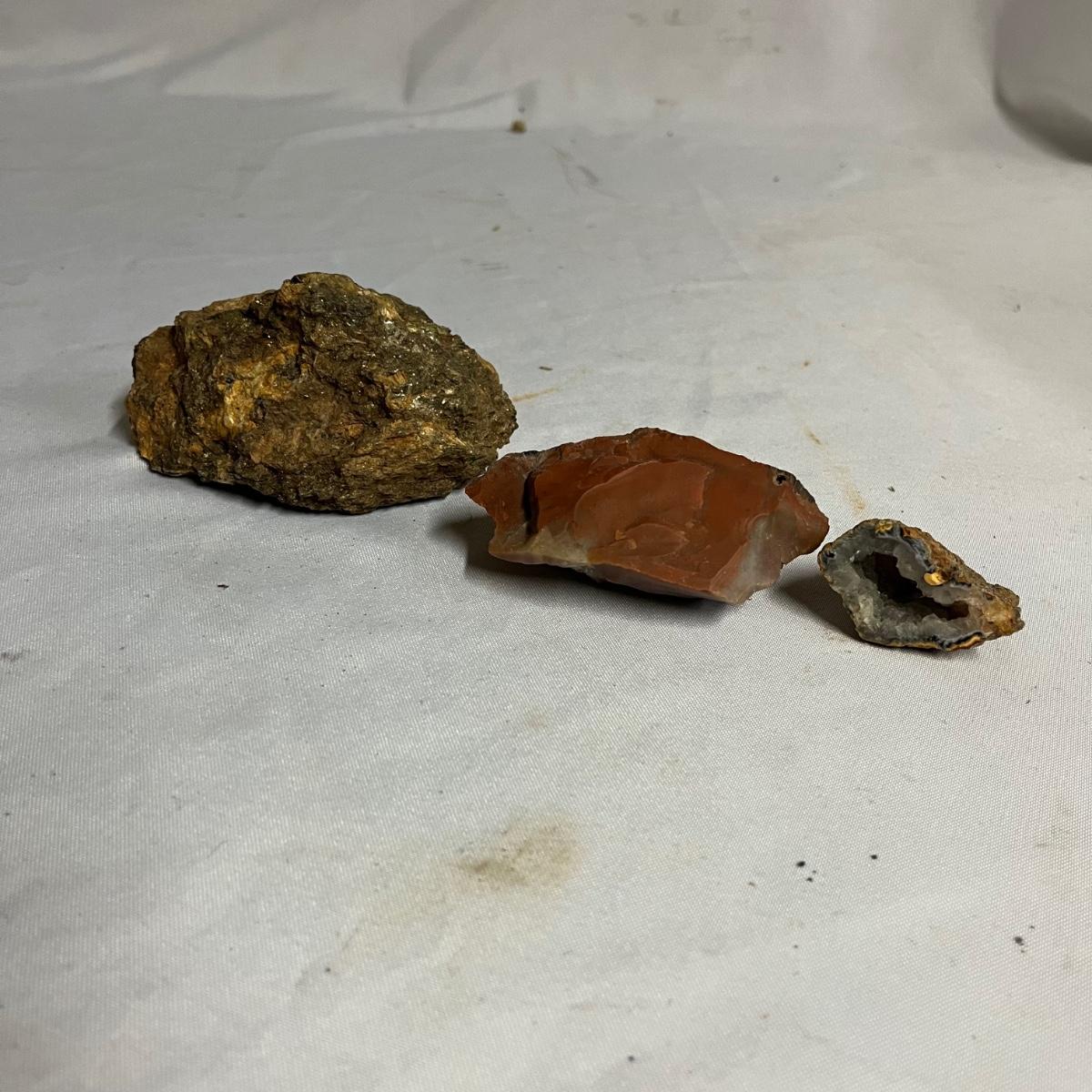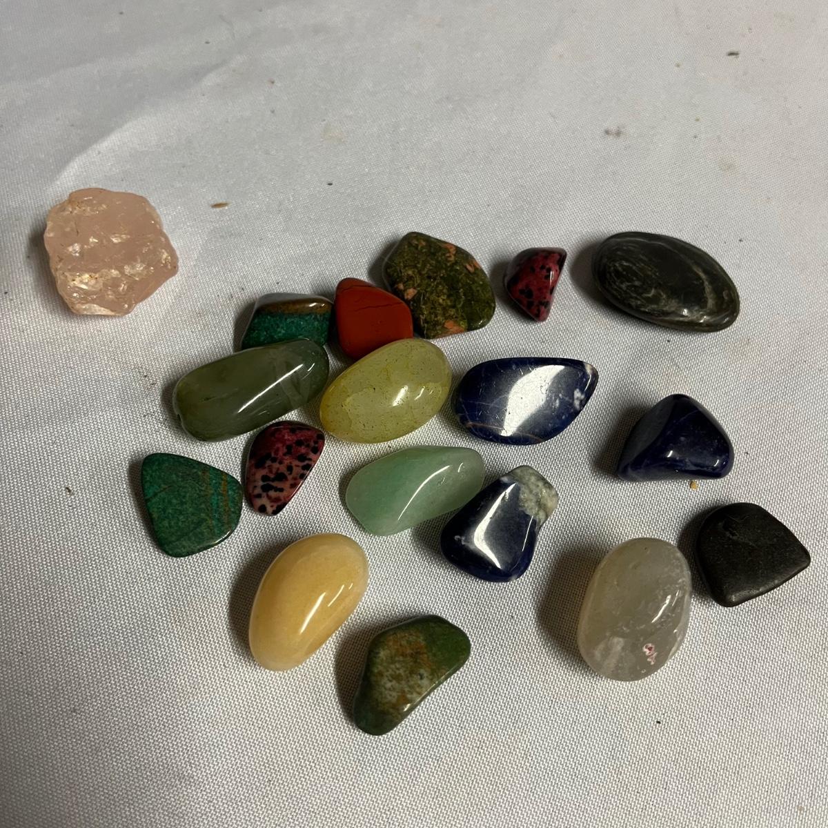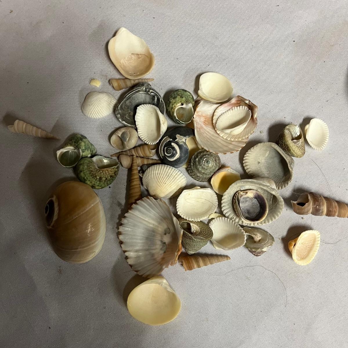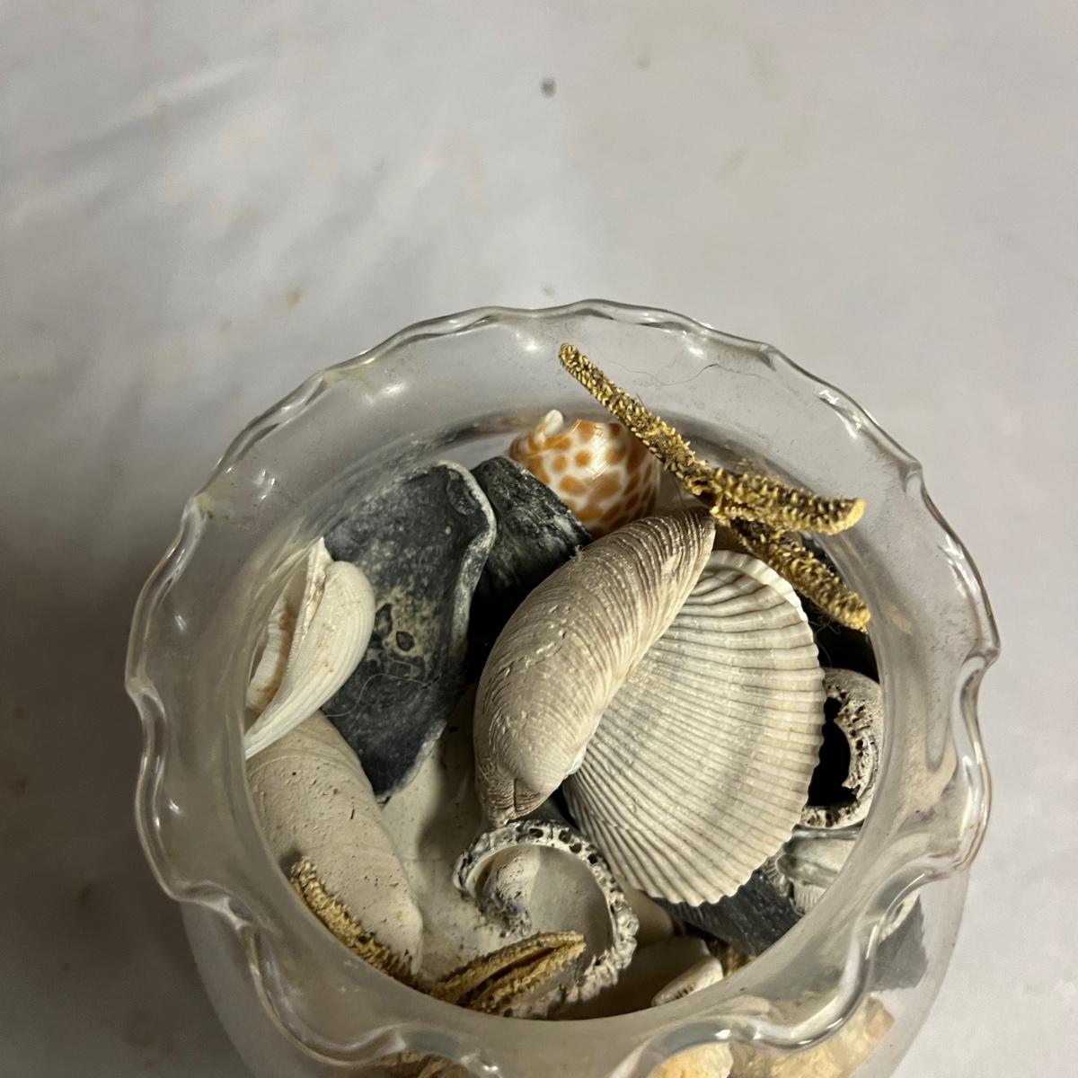 Lot includes assortment of sea shells, petrified wood, polished stones, coral and more. Coral measures 4” x 7” x 10”.